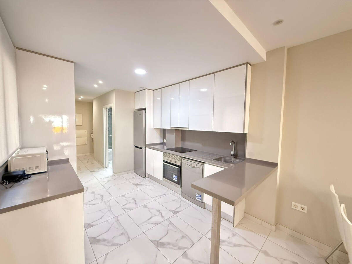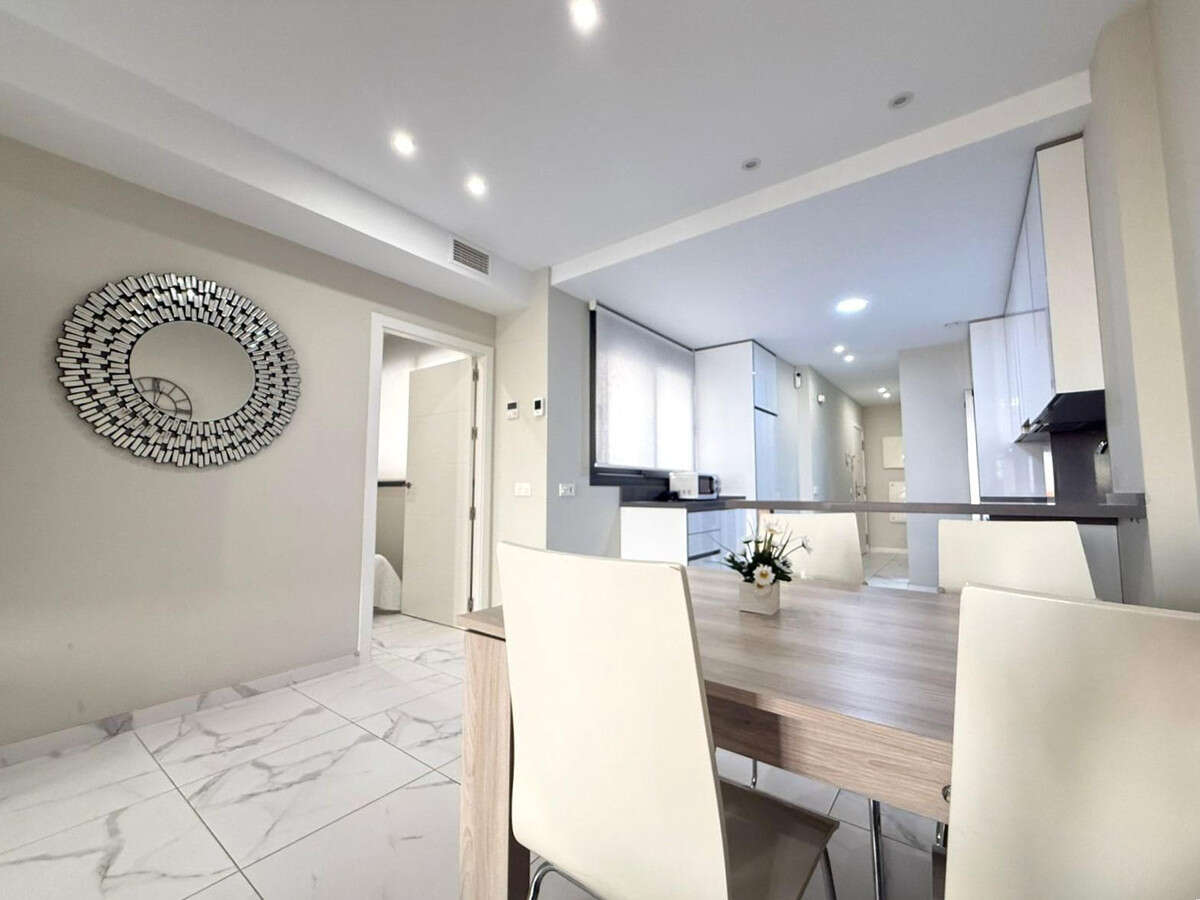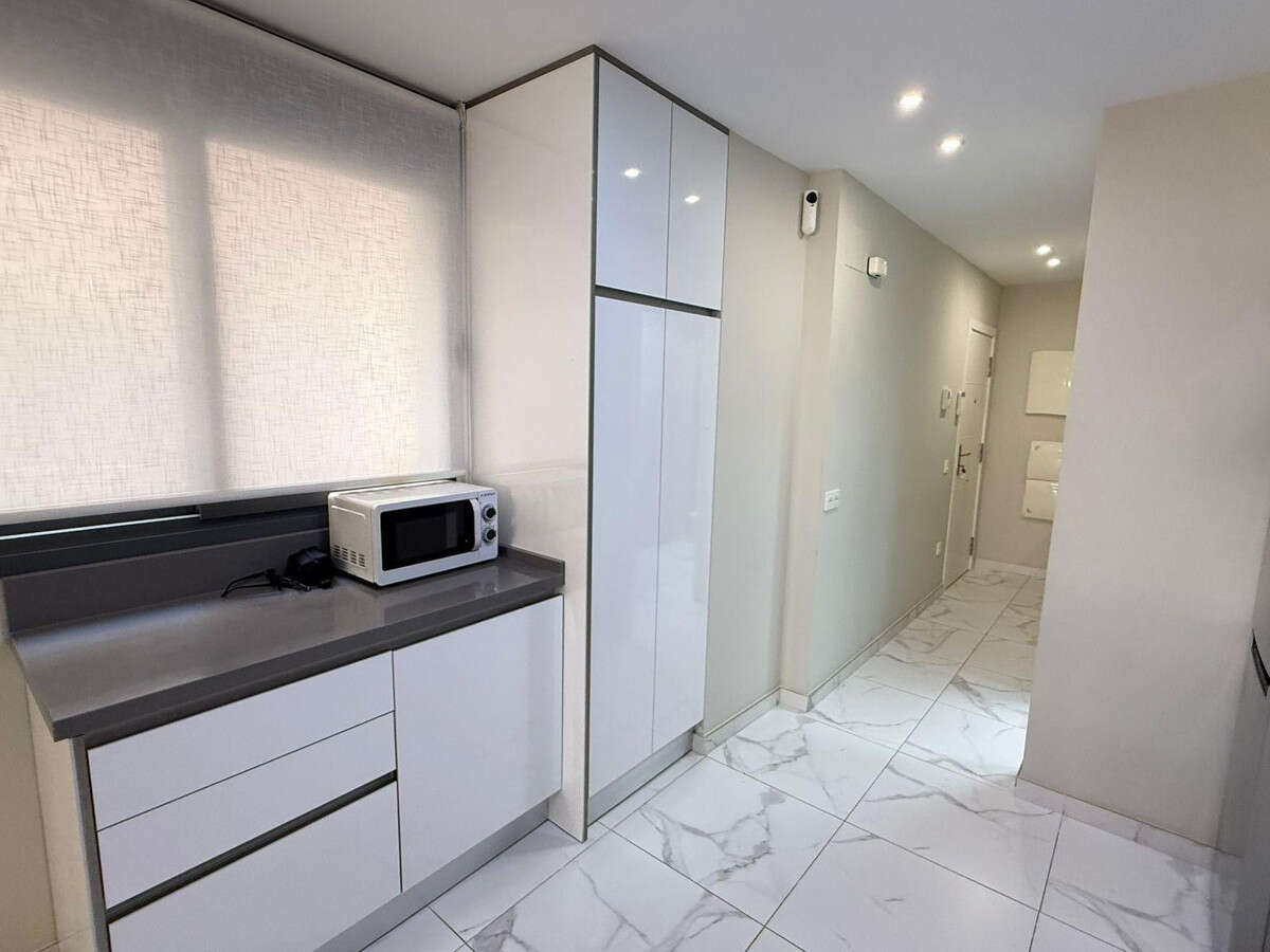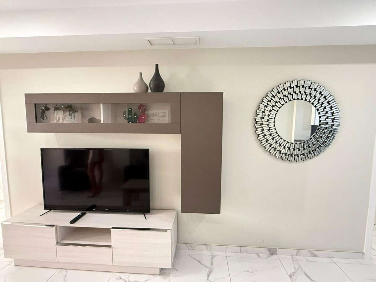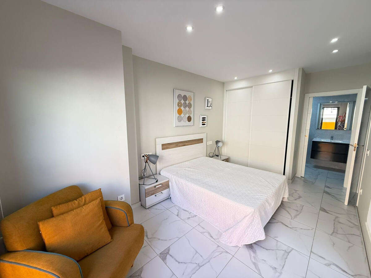 Upon entering, you are greeted by a spacious living room with integrated kitchen, creating a bright and open space ideal for enjoying with family or friends. Large windows allow natural light to flood the room throughout the day, while from the private terrace you can enjoy a relaxing side sea view, perfect for quiet mornings or evenings al fresco.