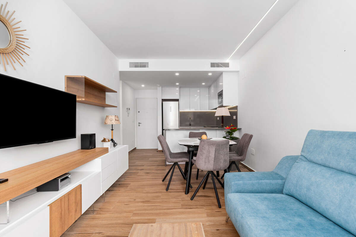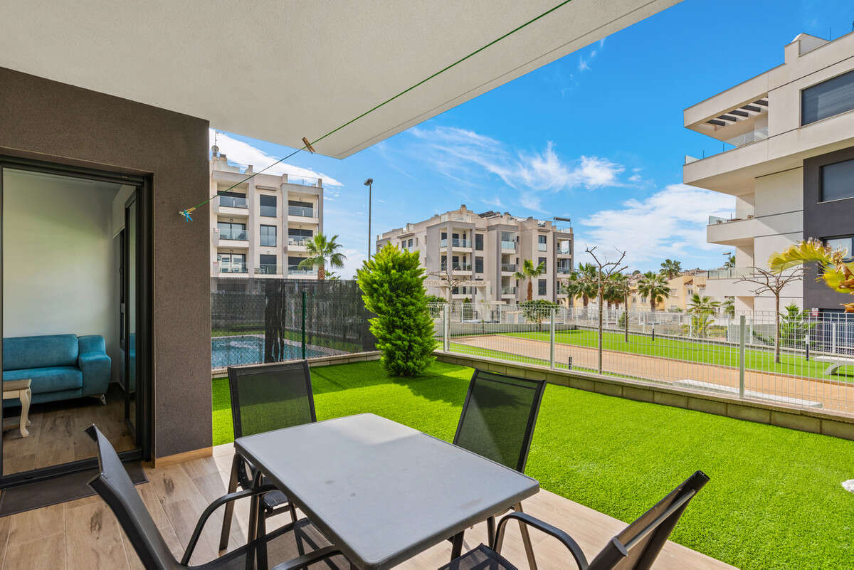 This modern ground floor apartment with 2 bedrooms, 2 bathrooms is situated in Villamartin, Alicante set in a great location only a few minutes walk to all local amenities (restaurants, bars and shops). The fantastic La Zenia beach and La Zenia Boulevard shopping centre is also a 10 minute drive. Villamartin Plaza and Villamartin Golf are less than 4 minutes away.