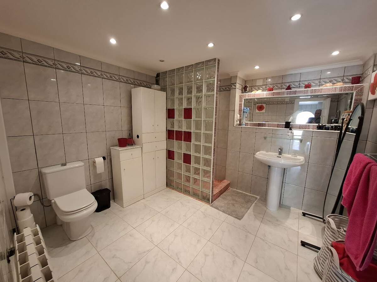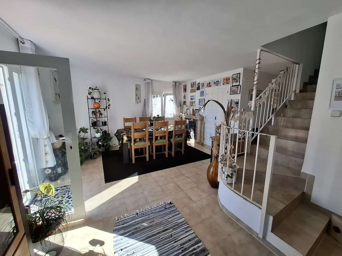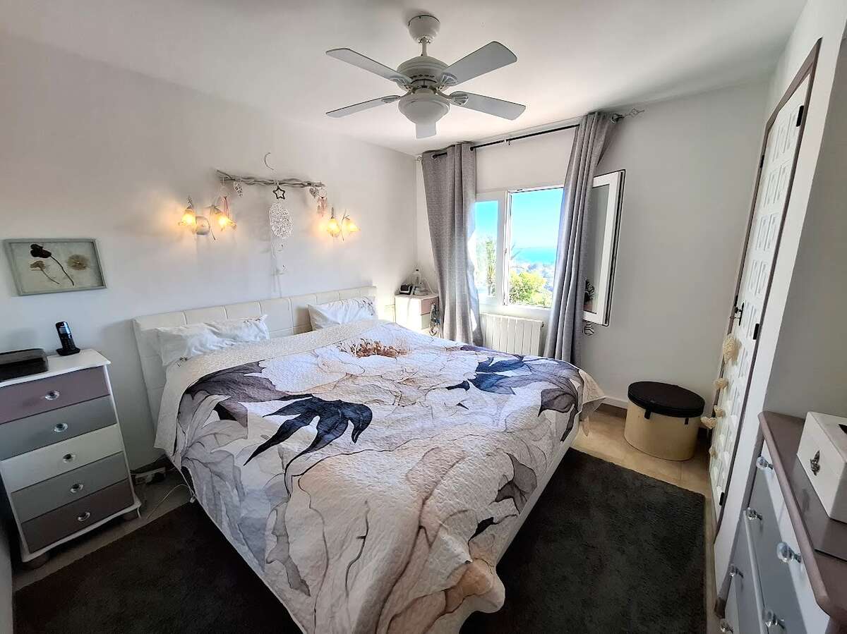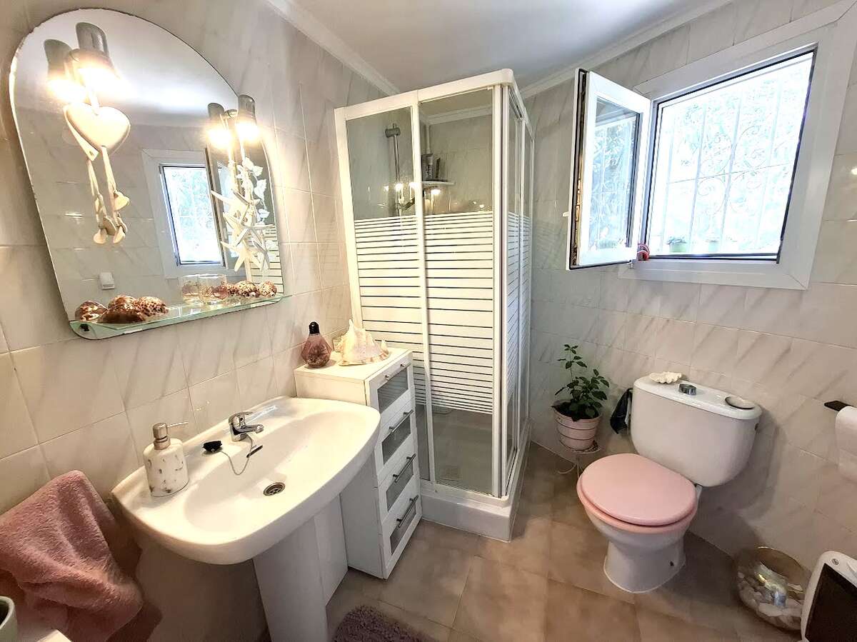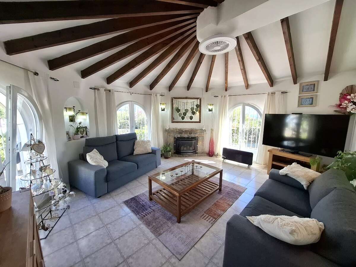 Villa with pool and sea views in Benissa. The main floor features a spacious and bright living-dining room, a fully equipped independent kitchen, four bedrooms, and three bathrooms. There is also a comfortable guest apartment with a living room, bedroom, and large bathroom. The villa includes gas central heating, a fireplace, a storage room, and a garage. Outside, there is a swimming pool, terrace, a lovely garden, and parking.