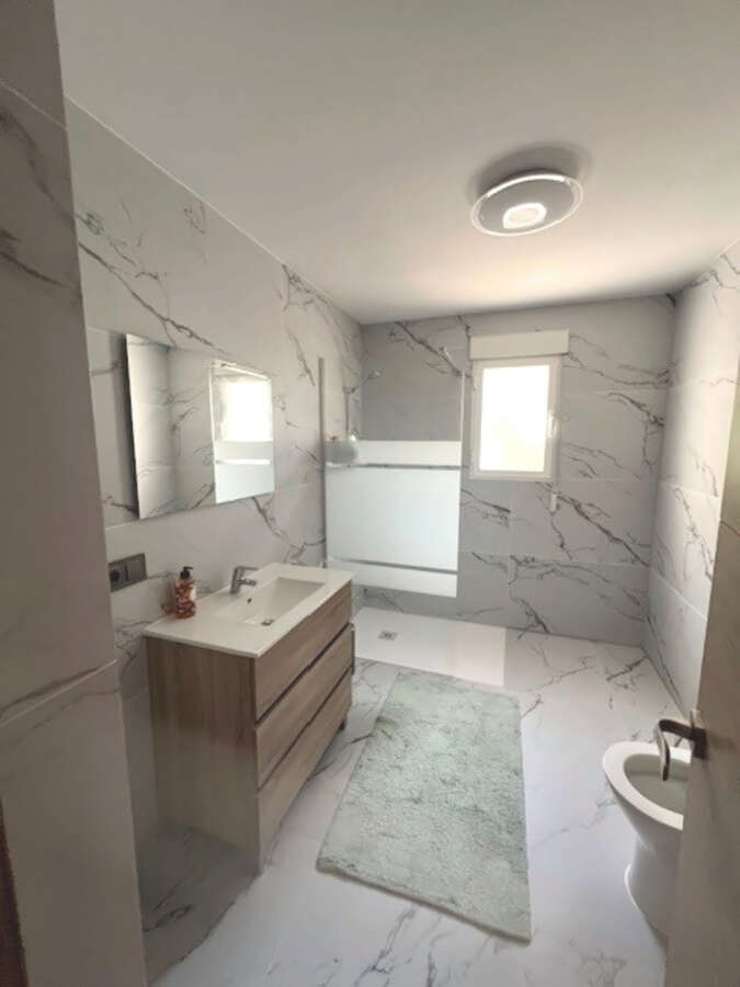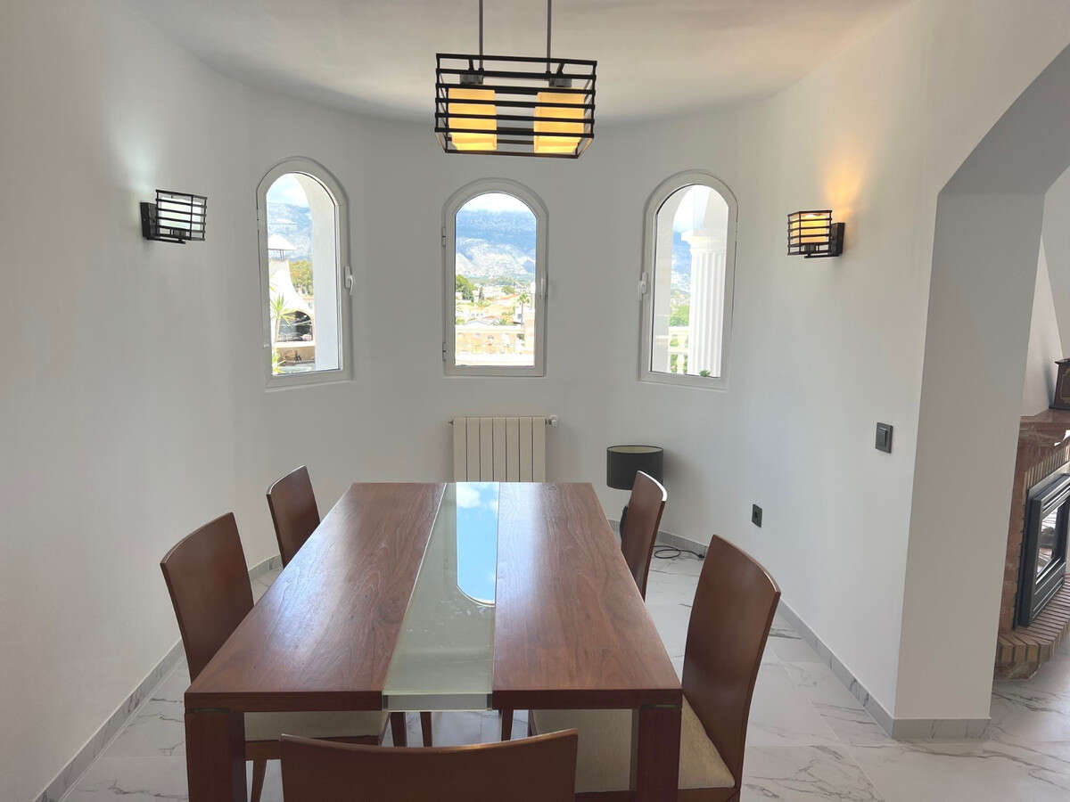 The property has a constructed area of 326 sqm on a plot of 816 sqm with south orientation and its distributed over 2 floor. The ground floor has a living-dining room with access to a spacious covered terrace with swimming pool and outdoor kitchen/bar, a closed kitchen, 3 bedrooms and 2 bathrooms of which one of them is en-suite. Furthermore on the same level there is also a guest apartment with one bedroom, one bathroom and a kitchen. On the first floor it has another room which can be used as an office or bedroom. The villa comes equipped with aircondition, radiators for heating, fireplace and double glazed windows and electric boiler for hot water. In addition the villa also features a garage.It's located 5 km from the beach, 3 km from the town centre of Alfaz del Pi, 4 km from the highway and 65 km from the Airport of Alicante.