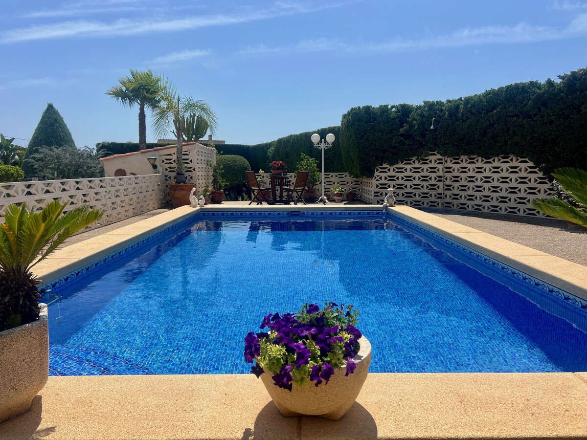 Step outside to discover a beautifully landscaped garden adorned with mature trees and vibrant fruit plants, creating a tranquil oasis. The centerpiece of the outdoor space is a private swimming pool, perfect for refreshing dips under the Alicante sun. The expansive plot offers ample space for outdoor activities, relaxation, or even further customization to suit your needs.