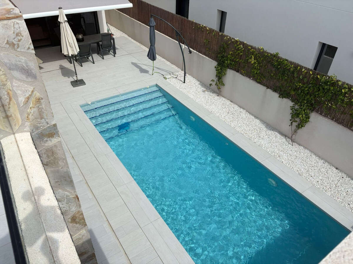 • Heat pump for heating the swimming pool, automatic slatted cover for the swimming pool
