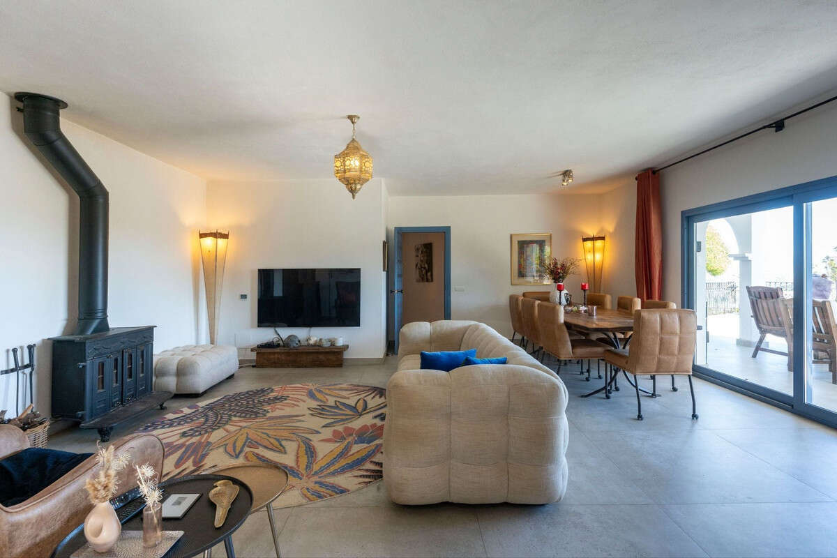 New to the market, this immaculate country property is ideally located in a prime position between Alhaurín el Grande and Coín, offering excellent road access to Marbella, Fuengirola and Málaga. The property enjoys stunning open mountain views while maintaining complete privacy, surrounded by mature vegetation and beautifully established gardens. The main house, all on one level, has been renovated to a very high standard and combines charm with modern comfort including underfloor heating and cooling system thoughout. It offers a spacious open-plan living and dining area with a feature log burner, air conditioning, and large French patio doors opening directly onto a private terrace overlooking the swimming pool, an ideal space to enjoy the panoramic views throughout the year.