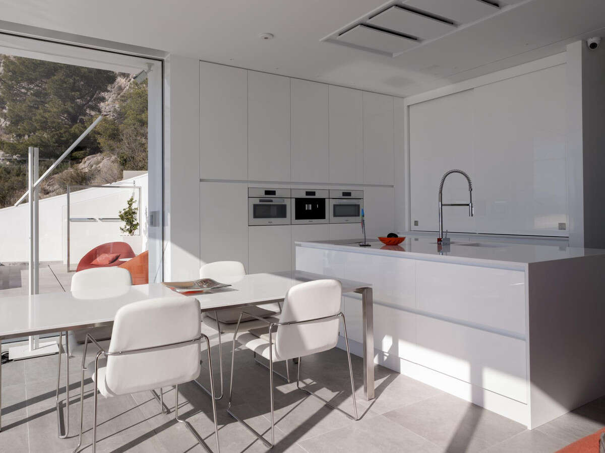 Modern luxury villa located with a built area of 221 m2, situated in a spectacular and quiet location of 1621 m2. The highest point of Mascarat, with the best views of the bay, the Mediterranean Sea and the port of Campomanes.