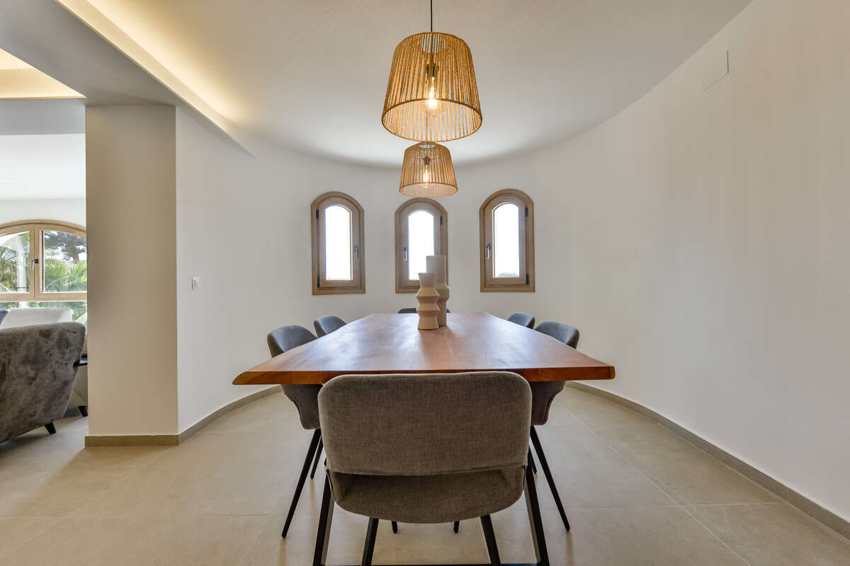 The villa offers panoramic views of the Benidorm skyline, surrounded by a green area that ensures privacy. With a plot of 3,325 m² and 273 m² of interior space, plus 280 m² of terraces, there is plenty of space to enjoy both inside and outside.