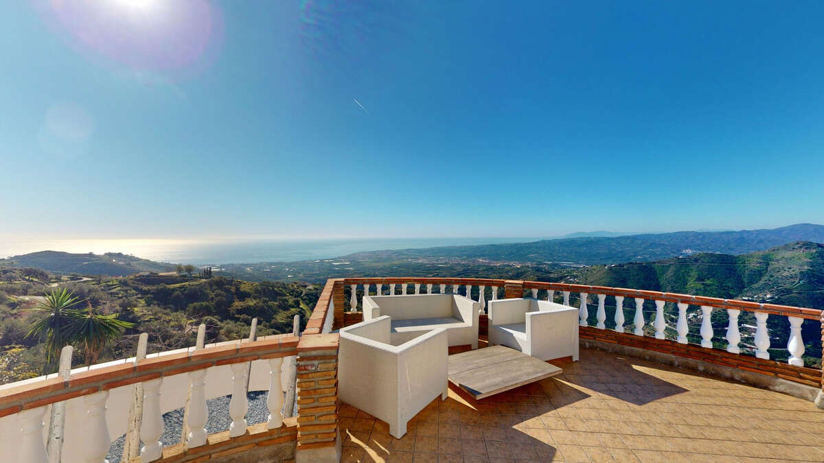 This recently renovated villa is located in a spectacular spot on Bentomiz Mountain in Arenas, just 5 minutes from the charming whitewashed village of Arenas, 20 minutes from the beaches of Algarrobo Costa, and 50 minutes from Málaga Airport, offering the perfect balance between tranquility and accessibility. The property stands out for its brightness, modern design, and high-quality finishes, featuring a spacious open-plan living room, dining area, and a fully equipped modern kitchen with top-tier appliances, including a gas cooktop, oven, dishwasher, and integrated fridge-freezer. The dining area opens onto a covered terrace, perfect for relaxing or enjoying outdoor meals. The villa boasts 3 bedrooms and 3 bathrooms, two of which are en-suite. On the ground floor, there is one bedroom with an en-suite bathroom featuring a shower, toilet, and sink, as well as air conditioning, and a second bedroom with a separate bathroom that includes a bathtub, shower, toilet, and sink. The master bedroom, located on the upper floor, features air conditioning, an en-suite bathroom with a shower, toilet, and sink, a walk-in closet, and direct access to a rooftop terrace offering breathtaking panoramic views and unforgettable sunsets. All bedrooms and the living room are equipped with ceiling fans for added comfort during the summer months. The outdoor area includes an automated saltwater heated pool measuring 9.5 meters by 5 meters and an automatic irrigation system to keep the garden in pristine condition. The property also has a shared well and a water storage tank with a 12,000-liter capacity. Several terraces with shaded areas enhance the outdoor space, one of which can be enclosed with a retractable awning. The villa is equipped with state-of-the-art technology, including 8 solar panels with a 6 kW inverter, central heating, hot water via a gas boiler, double-glazed windows and doors with anti-theft protection, a comprehensive security system with 24/7 monitoring, and a smart home system that controls lighting, the heat pump, solar panels, and water tank levels. This property seamlessly blends comfort, style, and sustainability in a privileged setting. Contact us today for more information or to schedule a viewing, either in person or virtually.