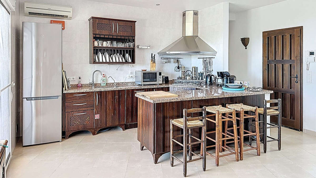 Are you dreaming of a life under the Spanish sun, surrounded by peace, space and ultimate comfort? This bright and elegant villa, located between Vélez-Málaga and the charming village of Arenas, offers exactly that. With panoramic views over the lush valley and the shimmering Mediterranean Sea, you can enjoy the very best of Andalusia every single day. Large sliding doors in the living room, dining room and modern open-plan kitchen flood the interior with natural light and open directly onto the covered terrace, where outdoor living blends seamlessly with indoor comfort. The inviting living room with its fireplace creates a cosy atmosphere on cooler evenings, while air conditioning ensures a pleasant climate throughout the year.