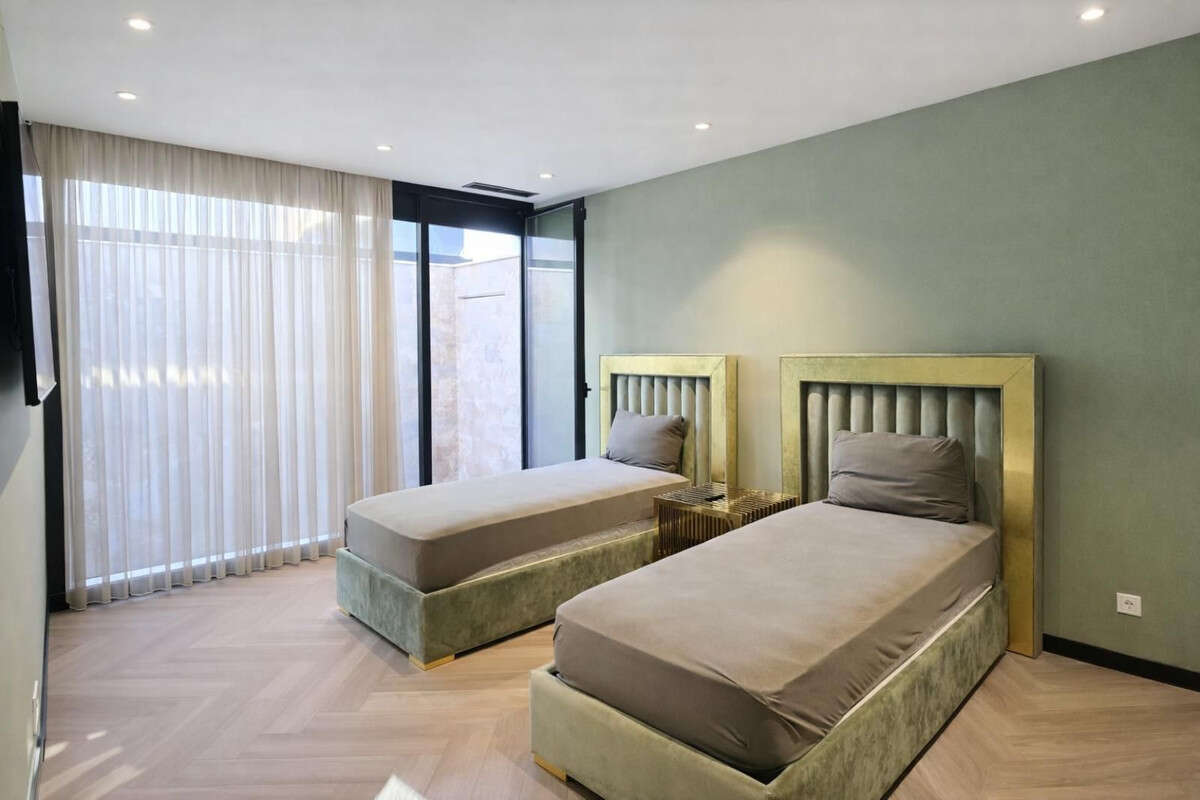 The villa features 3 spacious bedrooms and 5 luxurious bathrooms, finished to the highest standards with high-end design, bespoke furniture, and premium materials throughout. Expansive floor-to-ceiling windows ensure abundant natural light, creating bright, open interiors and a seamless connection to the outdoor areas.