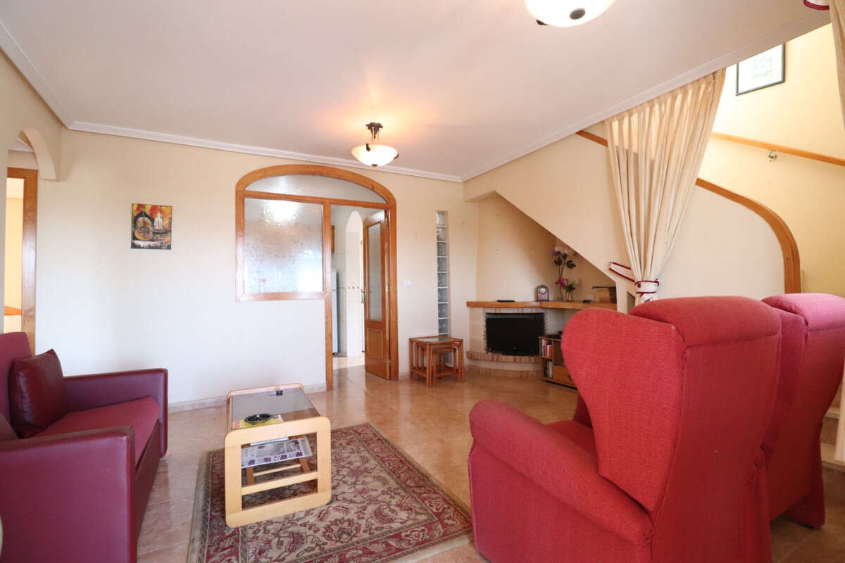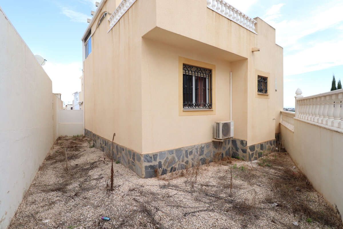 This East Facing, Three Bedroom, Detached Villa, Prime Location in Los Balcones, overlooking groves is located in a highly sought-after area on the Costa Blanca South. Situated just a couple of minutes' drive from Torrevieja Hospital and a selection of bars and restaurants, this property is less than 10 minutes from both Torrevieja and Orihuela Costa, with their beaches, golf courses, and vibrant amenities. The villa features three bedrooms, two of which are conveniently situated on the ground floor, along with a family bathroom. The glazed-in terrace welcomes you into the lounge area, which includes a charming corner open fireplace and stairs leading to the first floor. The separate fitted kitchen connects to a utility room for added practicality. The first floor comprises a third bedroom, a shower room, and access to a private solarium, of which half is glazed in, offering versatile use year-round. The exterior includes a low-maintenance tiled and graveled garden, off-road parking, and enough space to add a private pool if desired. Air conditioning is installed throughout for comfort, and residents also benefit from access to a communal pool. Don't miss this opportunity to secure a villa in such a prime location—be quick!\n
