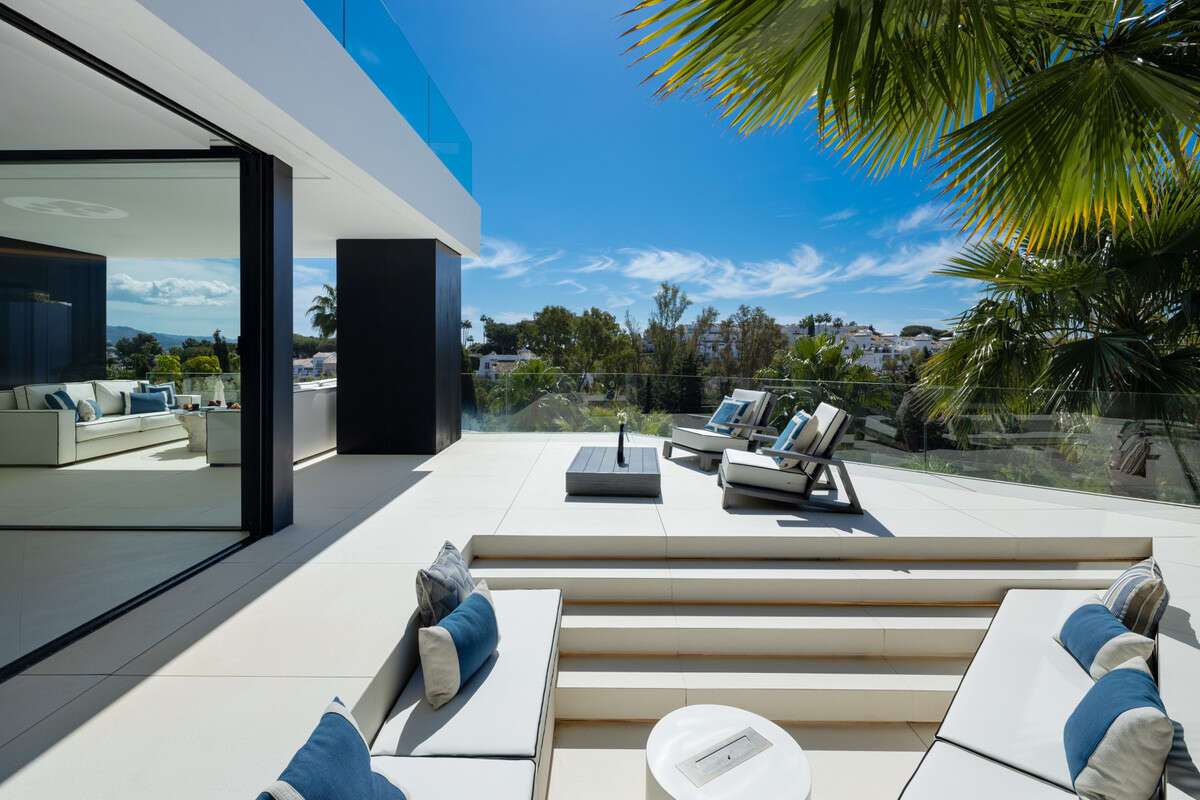 Designed by the renowned architect and fully refurbished in 2020 by Palmeras, this property exemplifies modern luxury living. The villa spans three levels, offering a total built area of 555 m² and expansive terraces measuring 530 m², all set on a 1,941 m² plot.