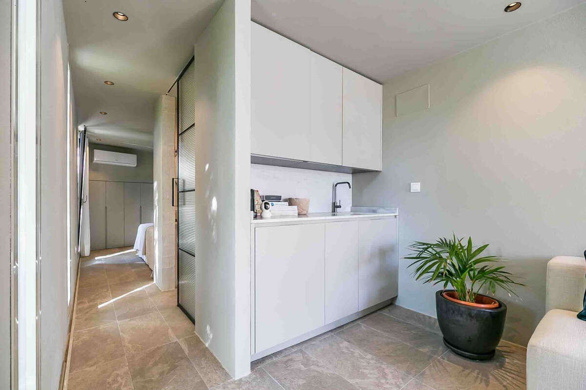Outside, the villa provides a series of inviting relaxation areas, including a private swimming pool, sunbathing terraces, tropical palms and secluded lounge corners. Whether you're hosting dinner under the stars, relaxing with a book or spending time with loved ones, the outdoor environment is designed to be enjoyed year-round.