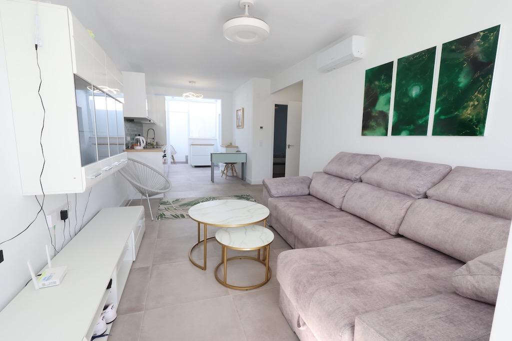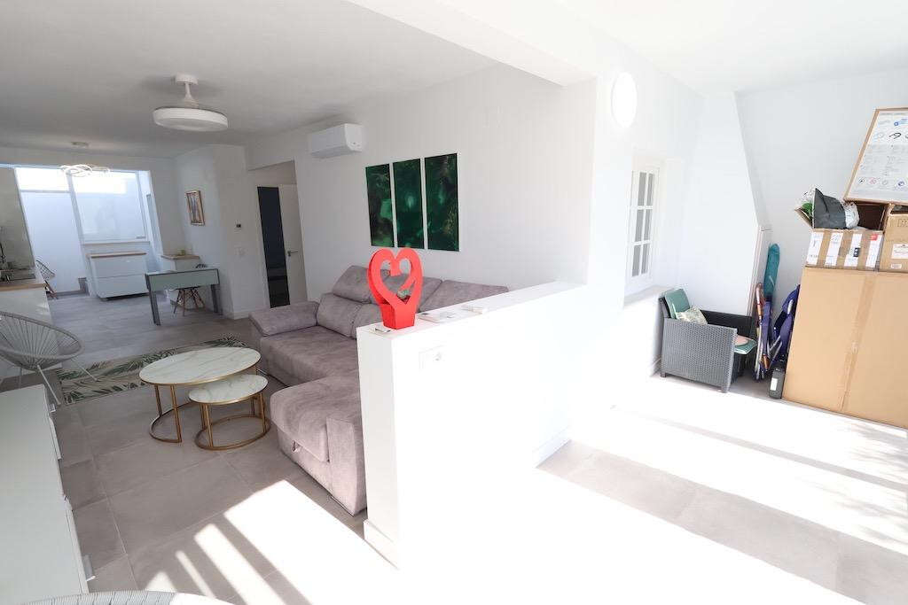Ciudad Quesada, beautiful ground-floor bungalow with no neighbors above and south-facing, fully renovated 77 m2 property with 2 bedrooms, bathroom, kitchen open to the living-dining room, terrace and large 30 m2 solarium with a Jacuzzi and storage room, 20 m2 tiled garden, the property is sold furnished and equipped, has underfloor heating throughout and air conditioning.