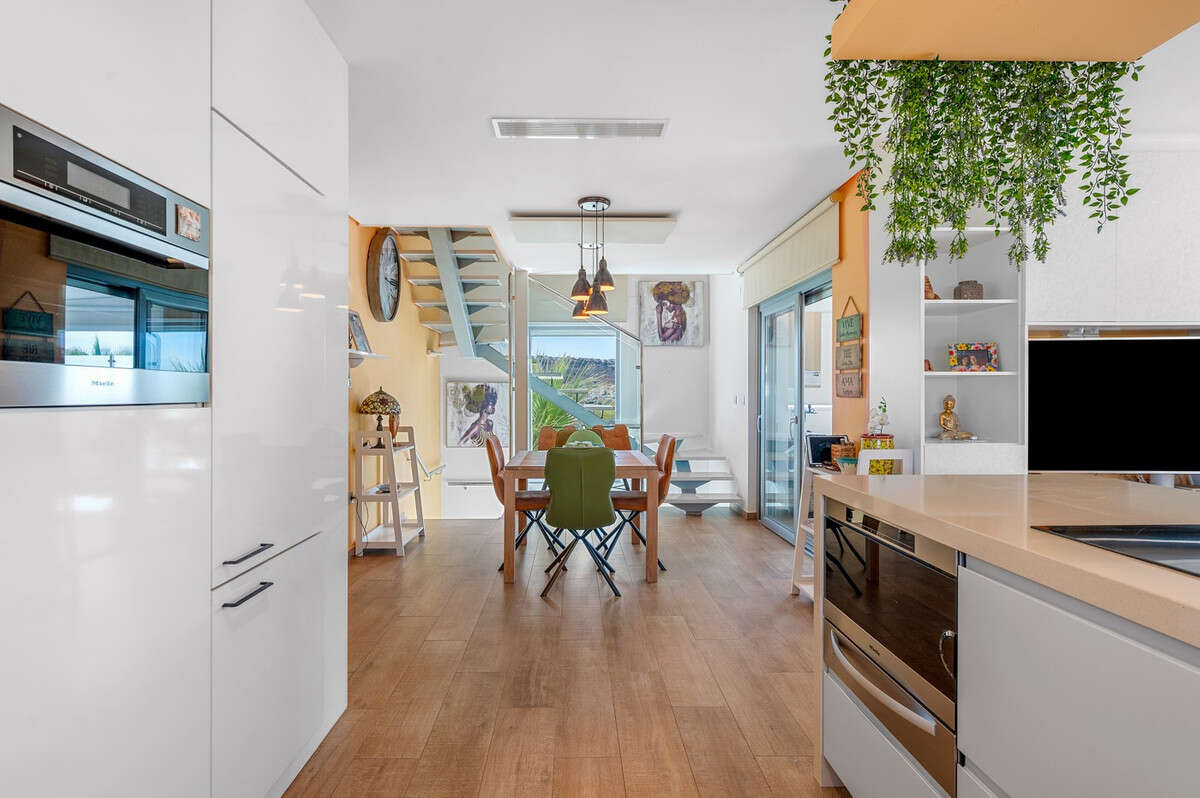 This impressive villa in Benijófar combines luxurious living with practical possibilities. The top floor features a very spacious master bedroom, a large dressing room, and a generous bathroom. The bedroom opens onto an extensive terrace, perfect for sunbathing or enjoying the views.