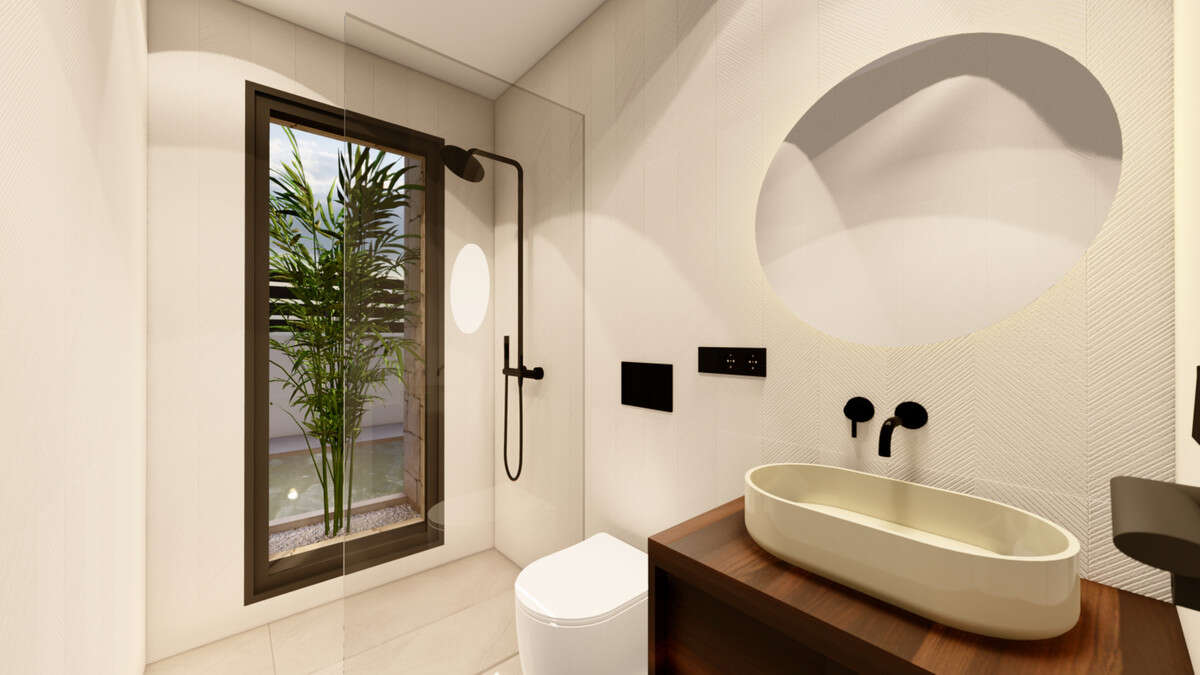 The properties come equipped with essential features such as pre-installation for air conditioning, motorised aluminium blinds, bathroom furniture with mirrors and shower screens, as well as a dressing room and built-in wardrobes. These details enhance comfort while maintaining a modern and cohesive design throughout the home.