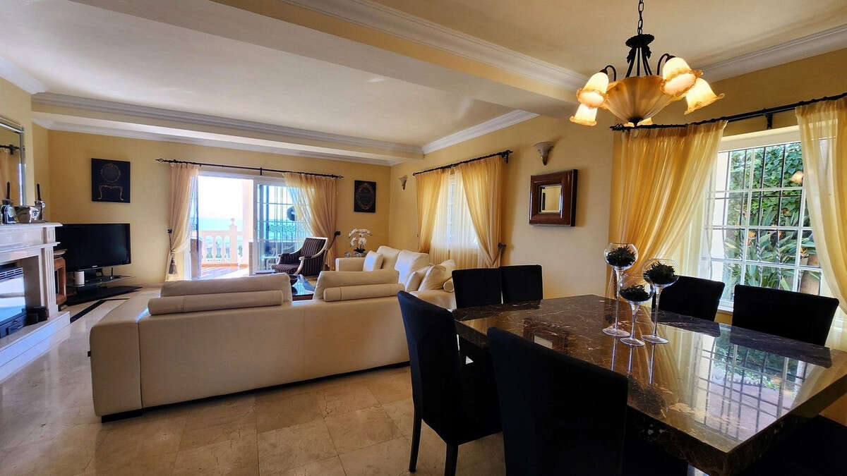 Experience panoramic sea views that will take your breath away! This stunning villa is just a short stroll to all the vibrant amenities and the pristine beach, offering some of the most breathtaking coastal vistas you've ever seen. Nestled in the coveted Jardin Botanico, just minutes from the heart of La Cala de Mijas, this property is a true gem. Set on a generous double plot, it provides ample space to truly live your dream. With five exquisite bedrooms, each boasting its own en suite, and a stylish guest toilet, comfort and elegance are at the forefront. The vast basement features a massive double bedroom, a lively games room, and a convenient shower room—a perfect retreat for family and friends. Up on the first floor, you'll find another charming bedroom, a stunning lounge graced by a colossal fireplace, and those extraordinary sea views that will forever inspire you. The sleek kitchen with access to the backyard makes everyday living a pleasure. Ascend the grand staircase to discover three additional en suite bedrooms, including the master retreat with its own private terrace—an oasis of peace and luxury. If you're seeking a remarkable investment or a place to call home that stirs your soul, this property is calling out to you. Don't miss the chance to make this enchanting haven yours!