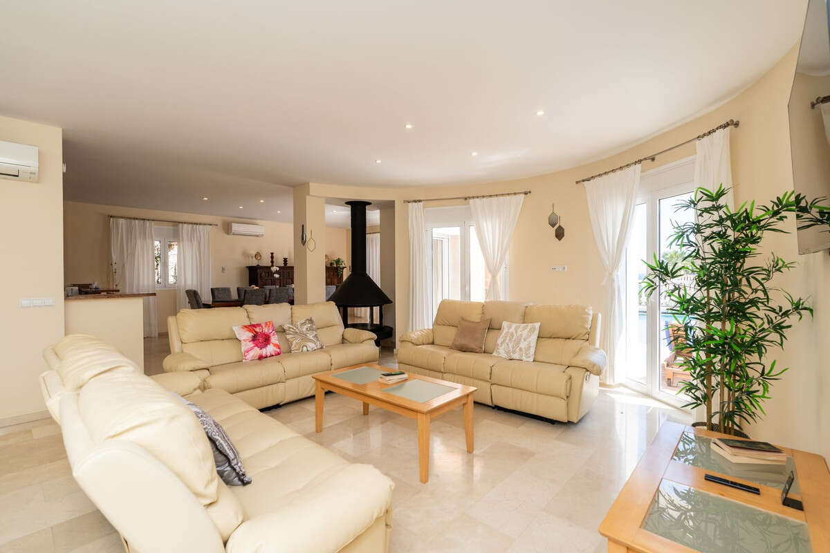 Completed in 2018, this three-story villa—all levels above ground—boasts traditional architecture and style throughout. The main level features a generous open-plan layout, seamlessly connecting the living room, dining space, and modern kitchen. These areas extend effortlessly to a heated swimming pool, equipped with a retractable cover, and a choice of sun-soaked or shaded terraces. Whether you're basking in the sun, dining al fresco, or enjoying panoramic sea views, every detail caters to luxurious coastal living. One en-suite bedroom completes this level.