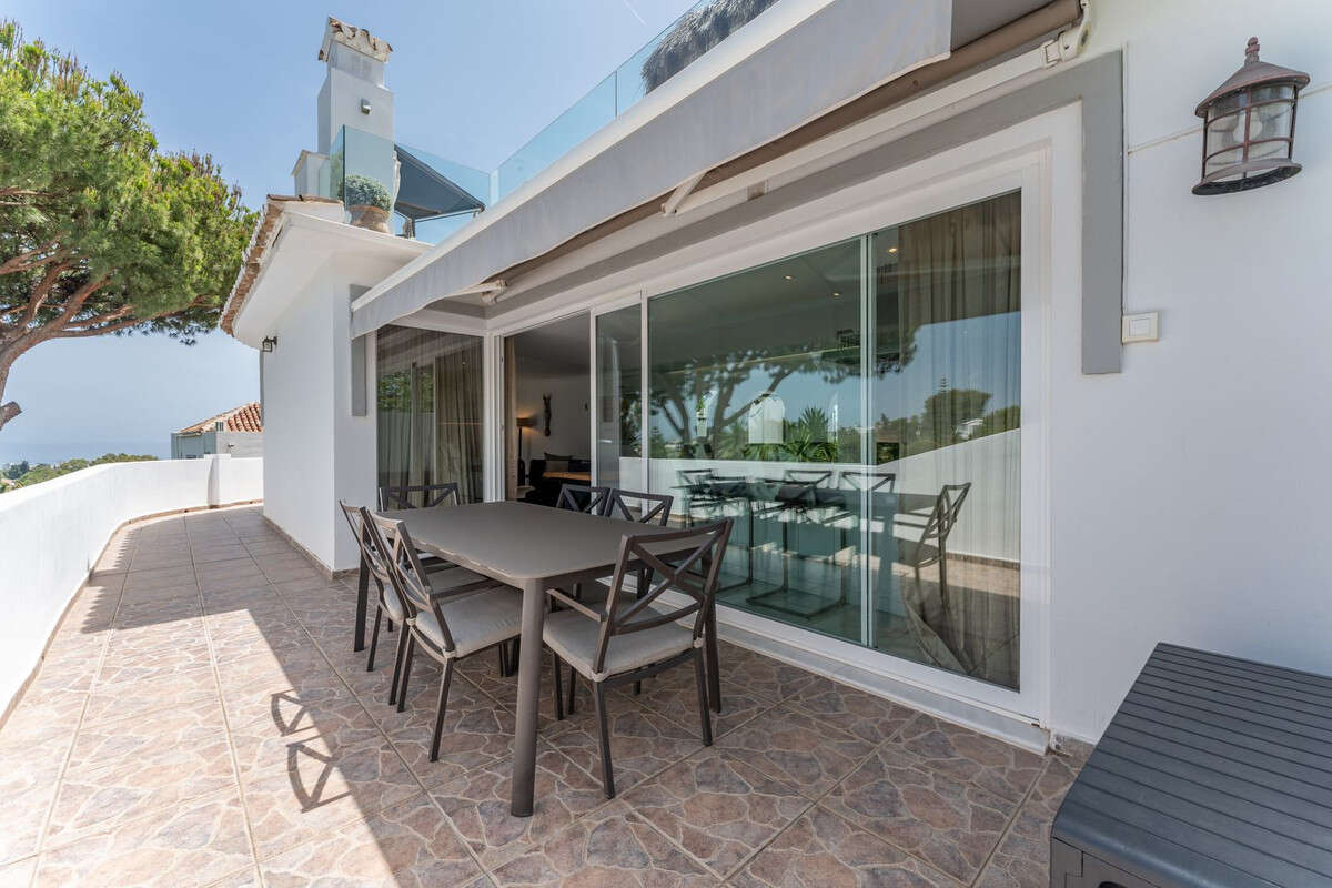 Stunning luxury villa located in the lower part of Calahonda, in an exclusive cul-de-sac surrounded by villas and in a very quiet residential area, just 800 meters from the beach, close to a beautiful natural green area of Calahonda, with breathtaking panoramic views of the sea and mountains. The property sits on a 715 m² plot and offers 232 m² of interior space plus a 70 m² terrace, fully enclosed, equipped with an alarm system and a private garage. The villa features four elegant bedrooms with king-size beds and en-suite bathrooms, marble floors throughout the house, double-glazed PVC windows and doors that provide exceptional natural light in every room. The furniture has been carefully selected and stands out for its sophisticated style and high quality. There are two dining areas — indoor and outdoor — perfect for entertaining. Outside, you'll find a large heated swimming pool with wooden decking, sun loungers, a chill-out area, and open views that invite absolute relaxation. On the rooftop, the spacious solarium offers a fully equipped bar, barbecue area, jacuzzi, and bar stools — ideal for enjoying unforgettable sunsets by the sea. Additionally, the villa holds a tourist rental license and is successfully rented most of the year, making it an excellent investment with high rental potential. A unique property that combines luxury, comfort, and a privileged natural setting on the Costa del Sol.