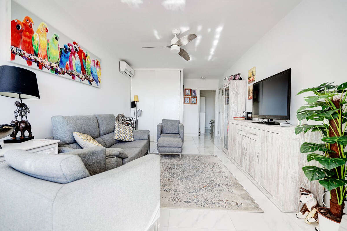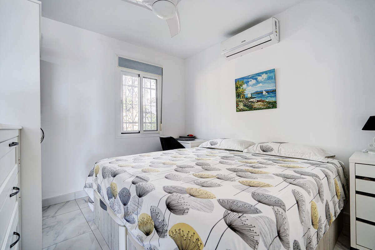 Outside, the property has a main terrace with sea views and a built-in barbecue, plus steps leading to a rooftop terrace with even wider views, power sockets, and all-day sun. The garden wraps around the bungalow and is finished with low-maintenance astro turf. There is also an exterior storage cupboard and fibre optic internet installed. The community is gated and secure and the communal gardens are well kept and spacious, with a large communal swimming pool. A shopping centre with supermarkets, pharmacy, bars, and restaurants is about a 3-minute walk away, and the beach can be reached in under 10 minutes on foot. It is offered fully furnished and includes a private garage.