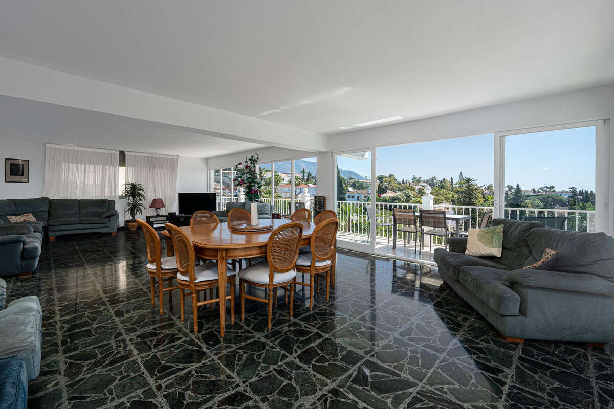 One level further down, there is a very comfortable and well-equipped kitchen with direct access to the garden and pool area. The property is located in one of the most exclusive areas of Mijas Costa, close to Fuengirola, with easy access to all services and transport connections within minutes.