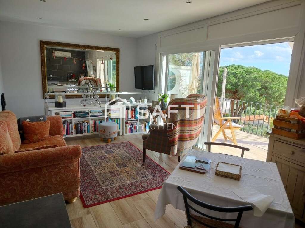 Townhouse located in the quiet residential area of Mas Fumats, just 3 km from the beach, offering lovely sea views. From the garage, an exterior staircase leads to the ground floor, which features an entrance area, one bedroom with en-suite bathroom, and a guest toilet. At the front, there is a terrace with views.