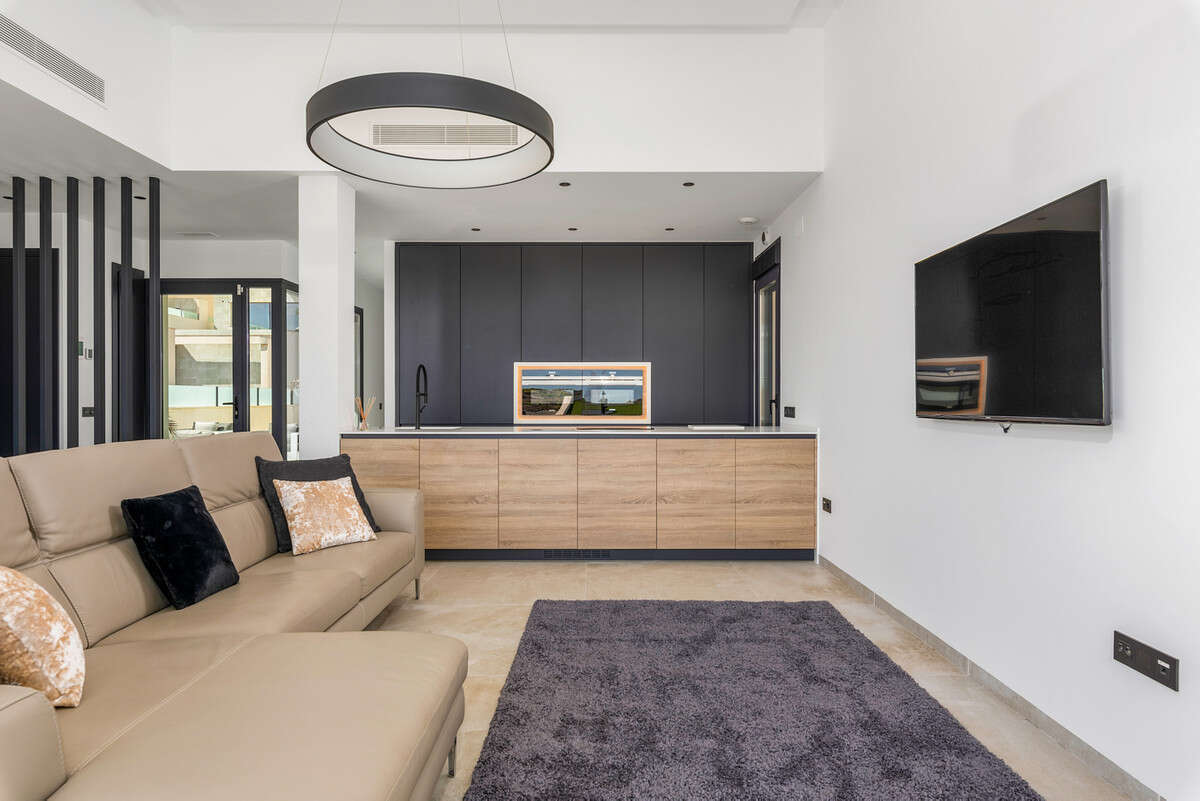 Outdoor areaThe villa is set on a lovely corner plot of 462 m2. The pool area is east facing, giving you amazing views over the surrounding area and to the sea. Around the pool you have a beautiful tiled area with space for several outdoor seating areas and sun beds. From the pool area you have external stairs leading you to the large roof terrace. Here you have one part that is tiled and the other part with artificial grass, both of them with a lot of space for outdoor entertainment and with amazing views. At the entrance to the house you have another lovely tiled garden area that faces west. This area is perfect to enjoy the afternoon / evening sun. At the lower level you can find a large tiled patio with an artificial vertical garden. This patio can be access from the garden through external stairs, and also from the living room and 2 of the bedrooms in the lower level.