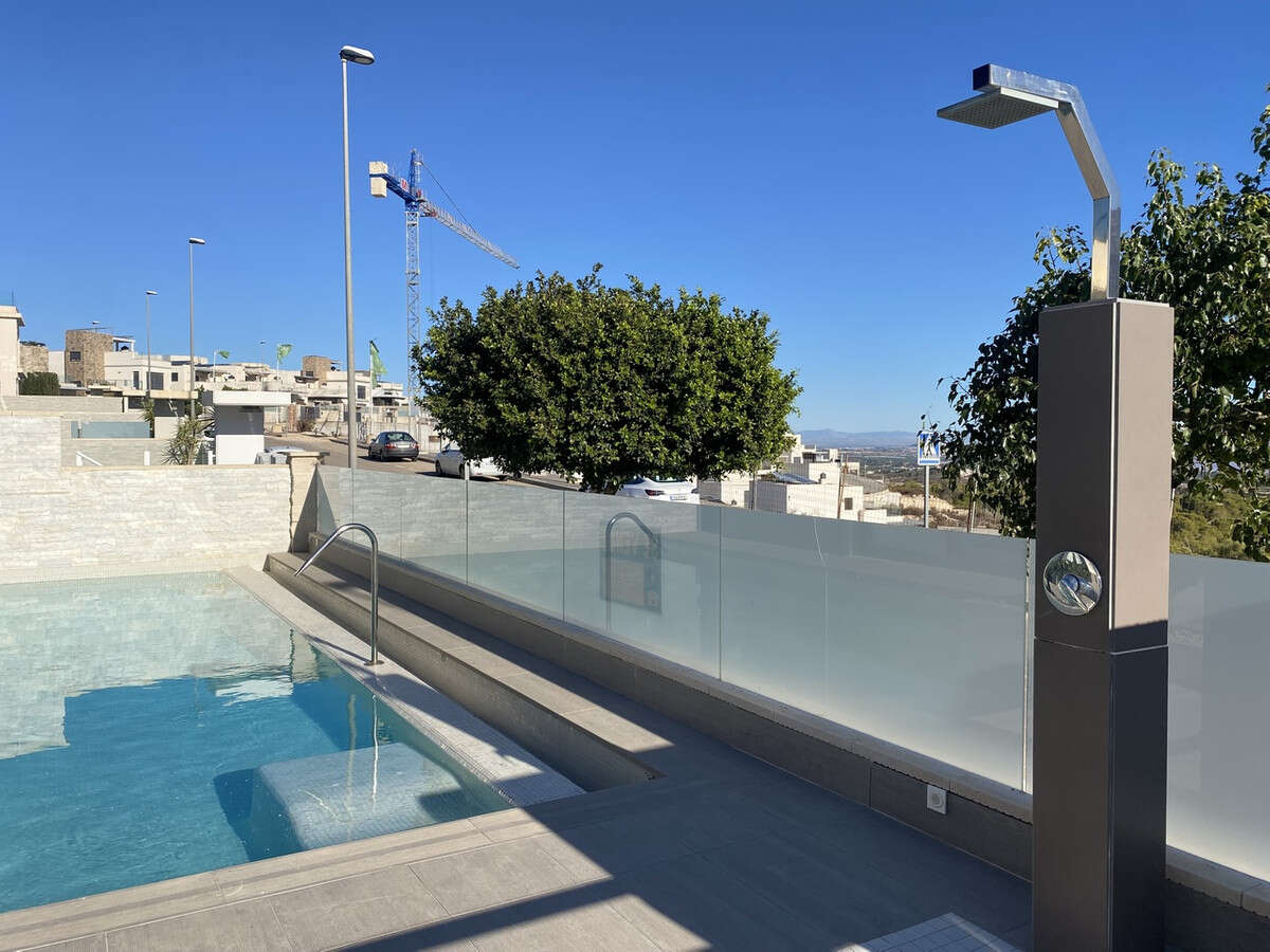 Welcome to this exceptional recently-built luxury villa at Residencial Bellavista, San Miguel de Salinas, offering a harmonious blend of contemporary design and breathtaking views. With a total of 5 bedrooms and 4 bathrooms, this meticulously crafted property spans two floors and a basement, accessible via a convenient elevator and a stunning glass staircase with interior lighting.