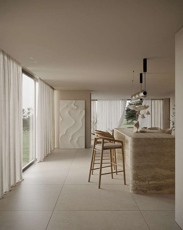 Blending modern Scandinavian style with the calm simplicity of Japanese design, the home feels both elegant and effortless. Large windows and open spaces bring the outside in, while the outdoor area is made for enjoying life, think an infinity pool, jacuzzi, and space to relax or entertain.