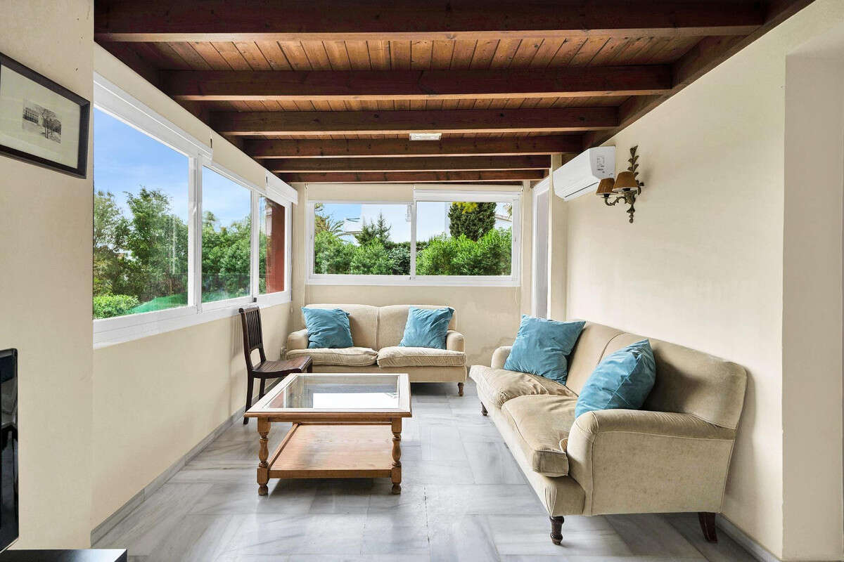 Villa located in a quiet residential area of Cerrado de Elviria, 800m from the beach, close to supermarkets and restaurants and 8km from the historic centre of Marbella.
