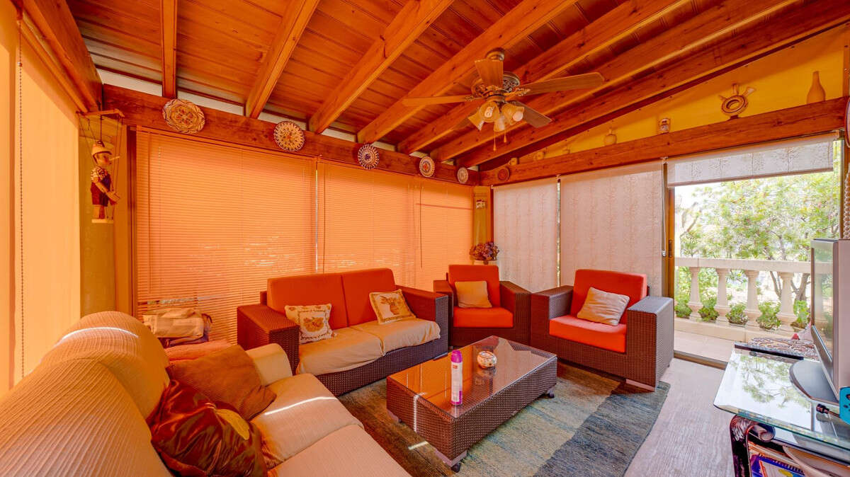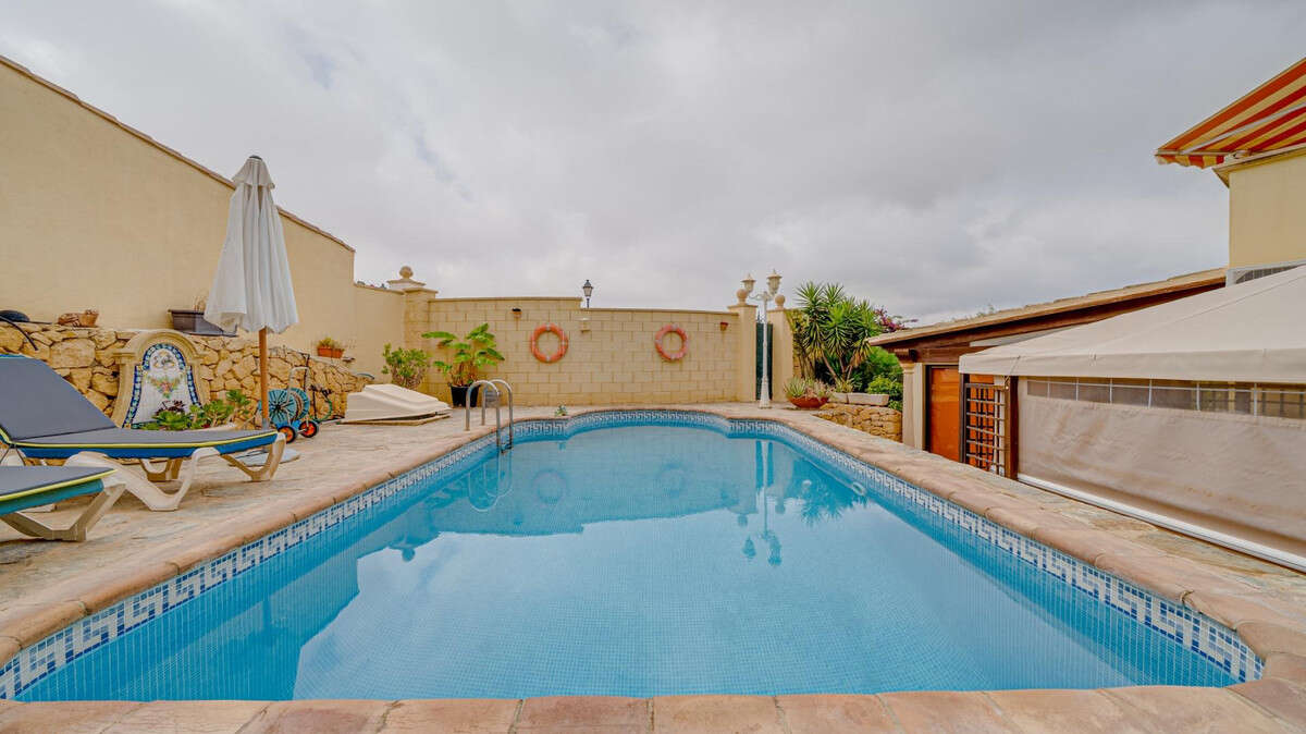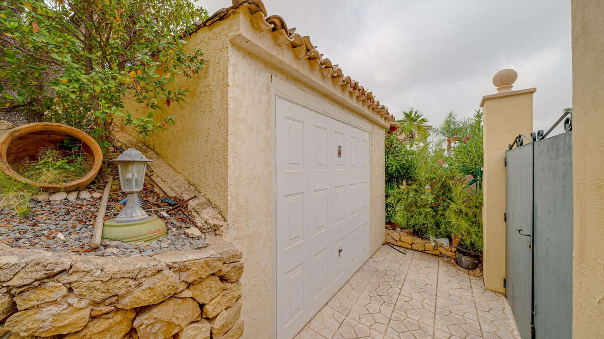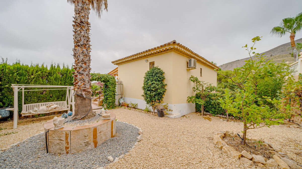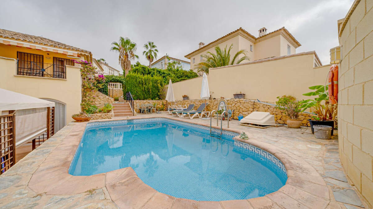 This charming villa is located in a privileged location: Golf Bahia, in Finestrat. Just a few minutes away from schools, shopping centres, the golf course and amusement parks, this villa is the perfect balance between comfort and lifestyle. Its surroundings are enhanced by an exquisite garden adorned with palm trees and fruit trees, creating a serene atmosphere. In addition, there are several cosy outdoor corners, including a barbecue and a covered terrace by the pool.On the ground floor there are two complete bedrooms, a well-equipped kitchen, a bright living room and a glazed terrace. On the first floor there are two other bedrooms, one is master- bedroom, and cosy lounge leads out onto a sunny terrace offering panoramic views of Benidorm and the sea.The amenities continue with a garage for one car and additional storage space. This is classy style villa is not only attractive to look at, but also it has a warmth and comfort in every corner.