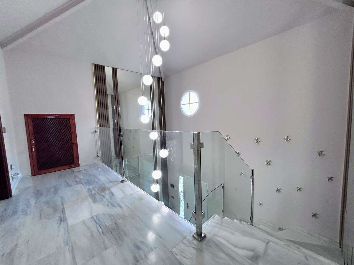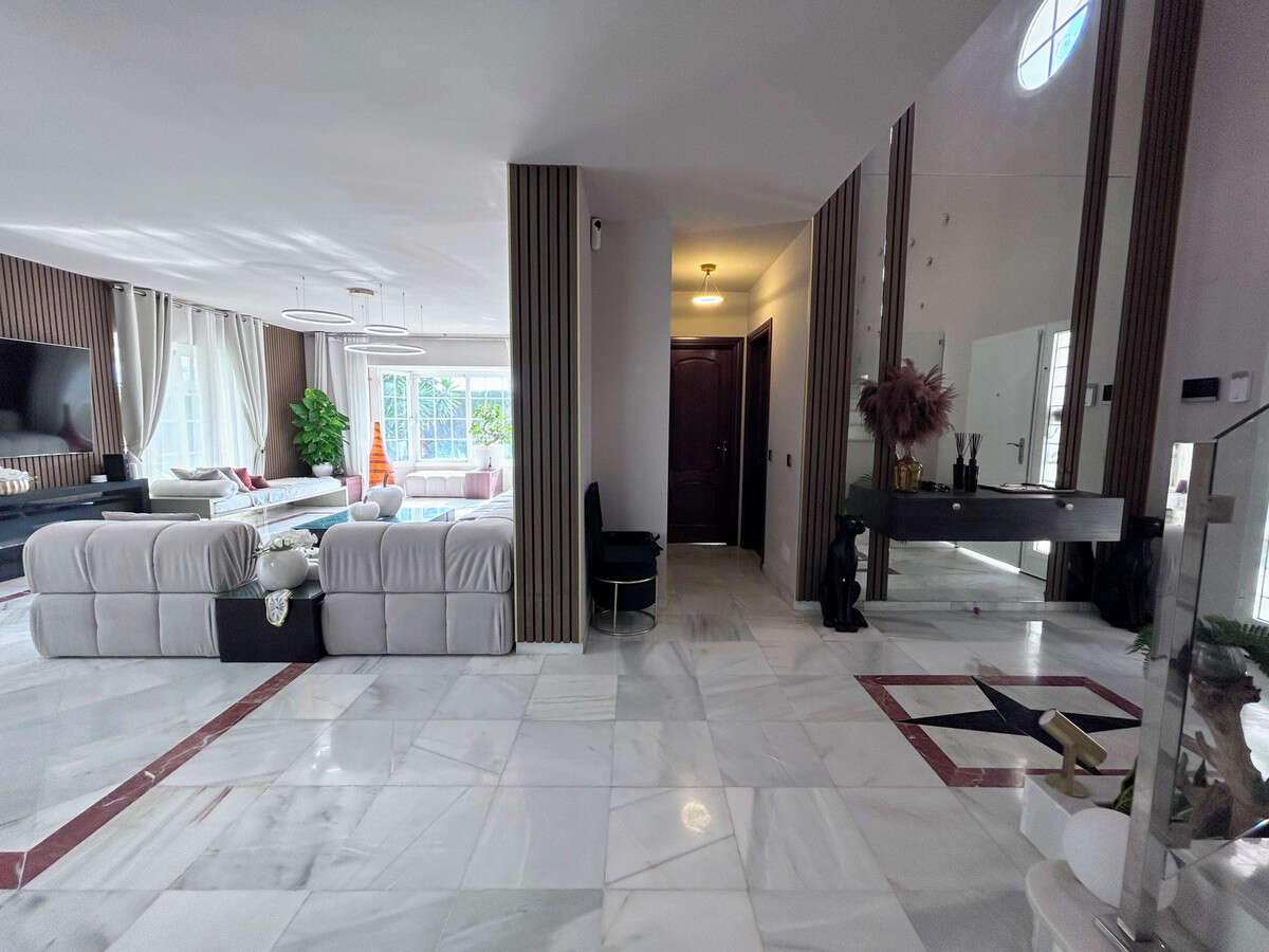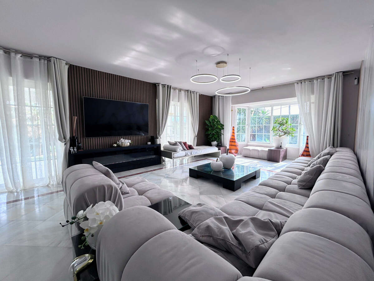 This bright and spacious villa is located in the quiet residential area of Guadalmina Alta, just 5 minutes from the beach and 8 minutes from the lively Puerto Banús. Securely gated, the property sits on a generous 1,400 m² plot with 623 m² built, offering a stylish and comfortable living environment.