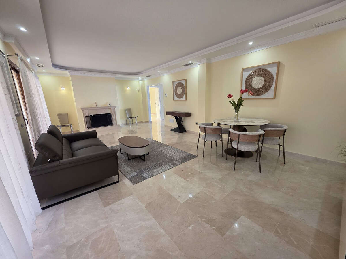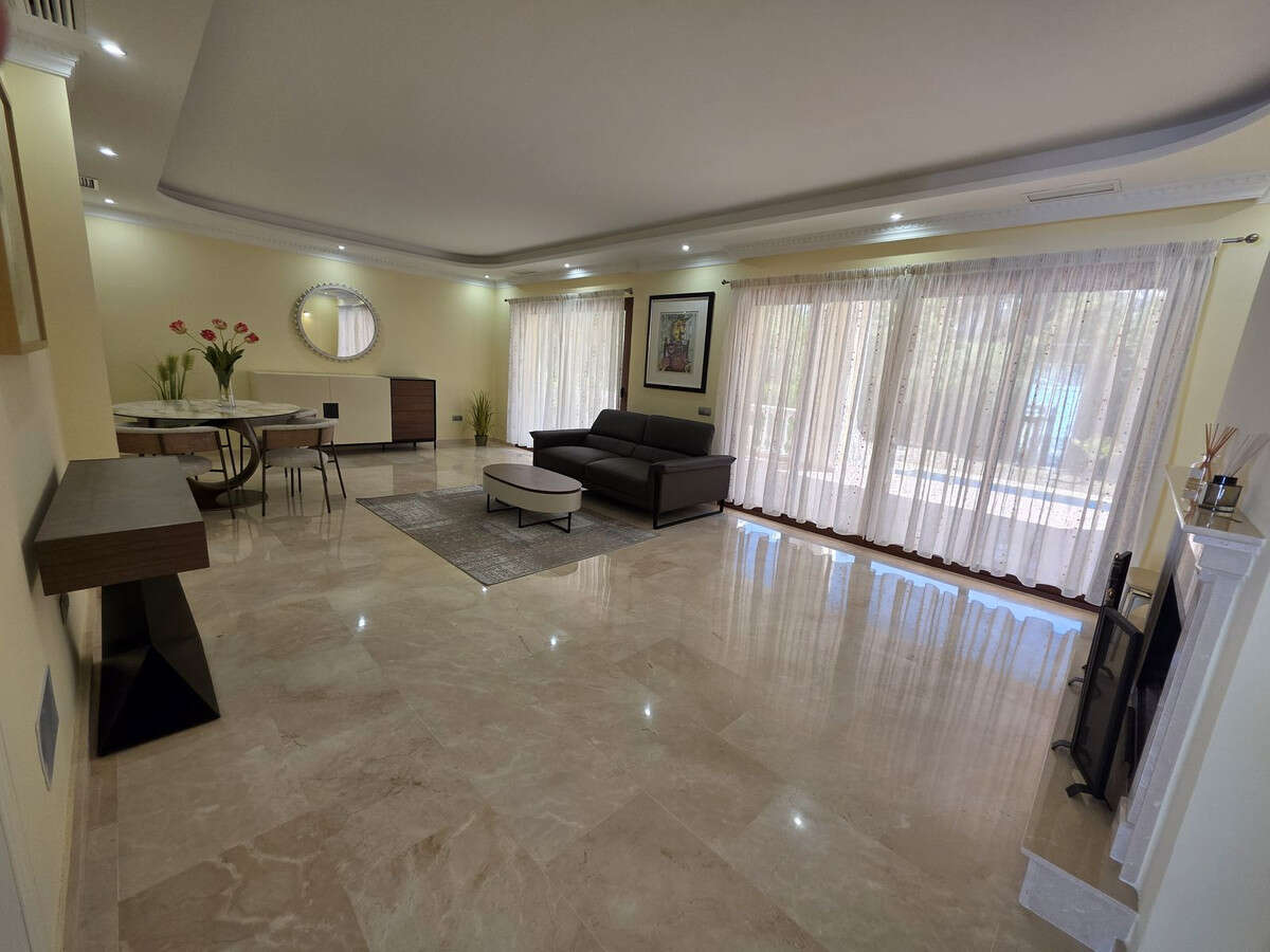 Luxury villa built on two floors plus a basement and a large garage for several cars, located in Hacienda Las Chapas, near Marbella and Malaga airport and Malaga city. Close to all services and near the beach! The villa is in perfect condition, offering four bedrooms en suite and a guest toilet. There is one bedroom en suite on the ground floor and three bedrooms with their own bathroom on the first floor. The villa has been completely renovated recently, offering an air conditioning system in all rooms and with underfloor heating in each bedroom. Large living room with access to the terrace and the garden with a pool. In addition a large and modern kitchen with all appliances. Terraces all around.