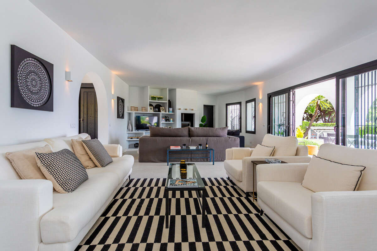Located in the exclusive enclave of Hacienda Las Chapas in East Marbella, the villa enjoys a privileged position within walking distance to a local supermarket and just a 10-minute drive to the heart of Marbella. The picturesque Cabopino Harbour, with its boutique shops, fine restaurants, and golden beaches, is only five minutes away.