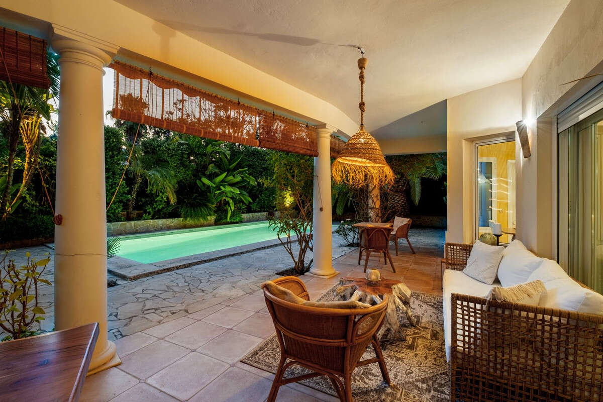 Surrounded by lush tropical gardens, the villa features a beautiful private pool that invites you to relax and unwind in a setting of total privacy. The large covered terrace, with a lounge area and outdoor dining space, is the perfect spot to enjoy unforgettable moments all year round, thanks to Marbella's warm climate.