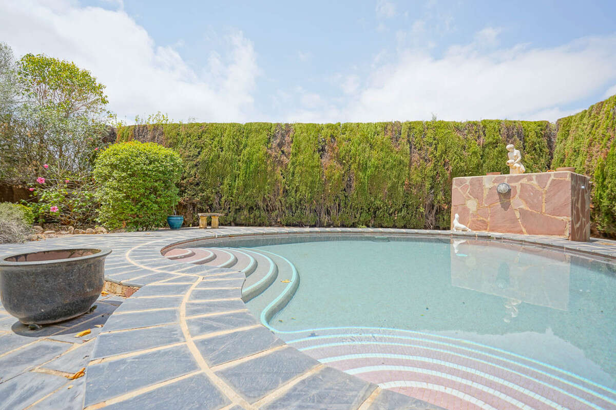 The ground floor consists of a hall with a bathroom, a spacious naya, a living room, a kitchen and an office. The upper floor consists of two double bedrooms and a bathroom. From the naya there is direct access to a large terrace. In addition, there is a second multi-purpose building of 156 m2 that consists of a guest house (consisting of a spacious double bedroom and a bathroom), a garage with space for several cars, a workspace and two storage rooms. The villa also has a beautiful 33 m2 swimming pool that enjoys 100% privacy.