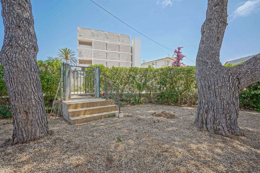 This large villa is located on a flat plot of 1144 m2 just 50 m from the beautiful beach of Cala Blanca. The villa is divided into two almost identical floors. The ground floor comprises a living-dining room, a kitchen, three double bedrooms, a bathroom and a covered terrace. The upper floor consists of a living-dining room, a kitchen, three double bedrooms, two bathrooms, a covered terrace and a large solarium of 40 m2 facing south. There is also a garage, a barbecue, an outdoor shower, two 16,000-litre water tanks for irrigation and access to a communal water source. The villa is surrounded by a Mediterranean garden, with plenty of space on both the south and north sides of the house. On the north side are several pine trees that, together with the cool sea breeze, ensure it is never too hot on the covered terrace. The south side, surrounded only by a bright flower hedge and a few fruit trees, is ideal for enjoying the sun in winter or for installing a swimming pool. The villa is less than a 1.5 km from the sandy beach and the Arenal promenade. There is a pharmacy and an international school 300 m away and a supermarket 500 m away. Just 100 m away is also a nice bar by the sea.