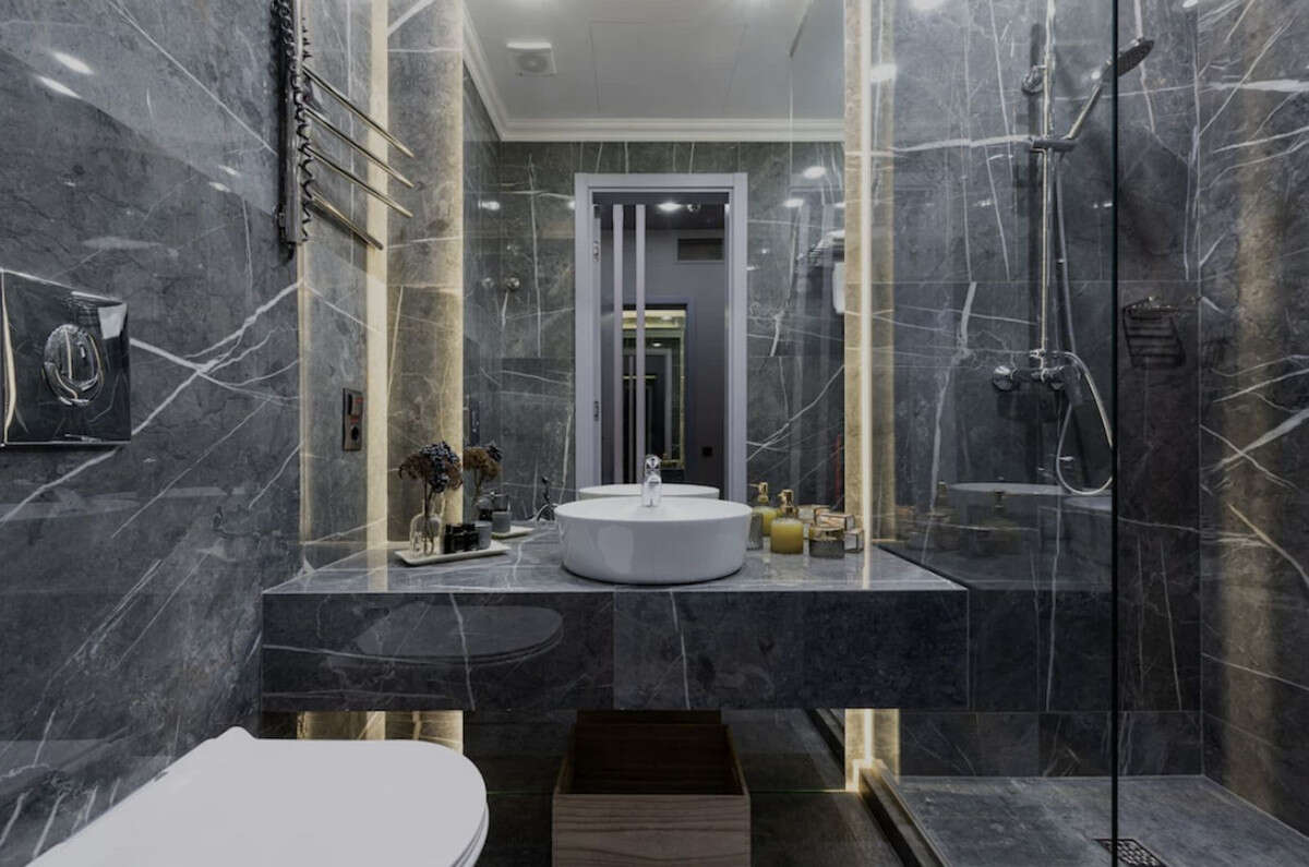 - Bathroom walls covered with COVERLAM wall plates