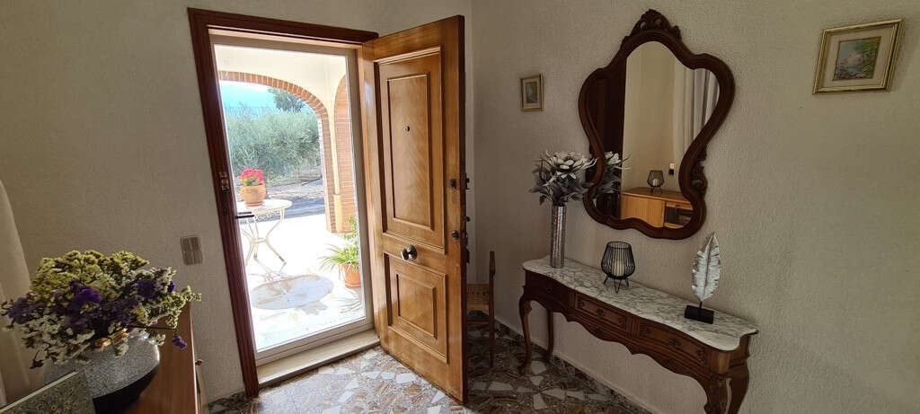 The private house has a total habitable surface of 330 m², all on one floor and consists of a very spacious kitchen with closed fireplace, a large storage / laundry room, a sitting room, lounge - dining room, 2 entrance halls (front and rear), 2 bathrooms, 3 bedrooms , a large walk-in dressing room and a beautiful covered terrace.