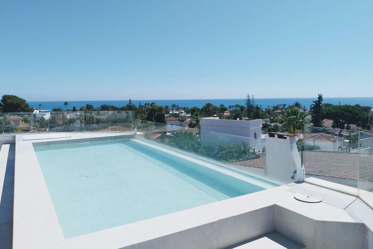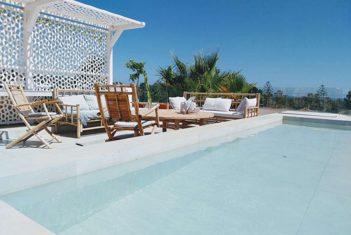 One of the standout features is the rooftop terrace with its own heated pool, perfect for sunset swims or simply soaking in the enviable views that stretch all the way to Gibraltar and Africa. Downstairs, there is a garden-level infinity pool and low-maintenance outdoor space.