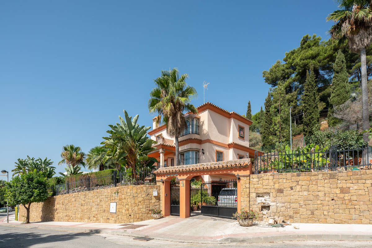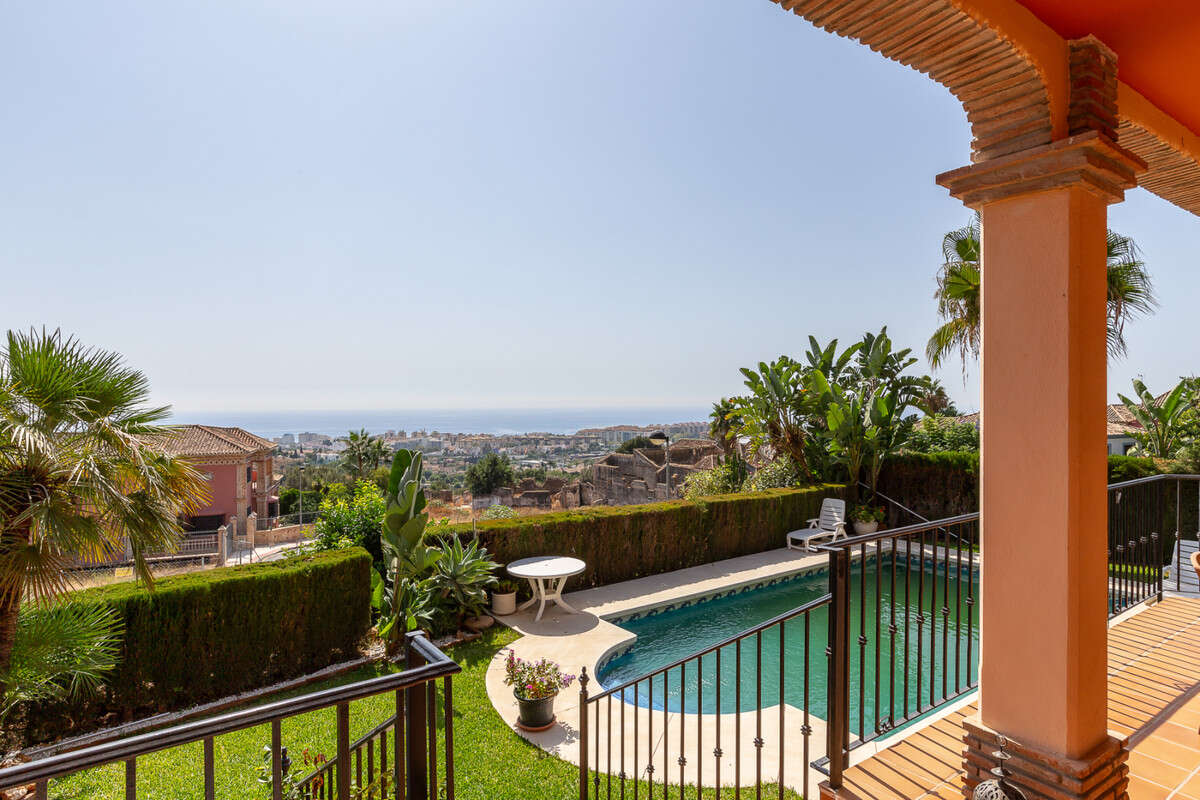 Large, attractive family home in very quiet area close to Marbella and next to a Natural Park. Beautiful open south and south-west views. Large, fully equipped kitchen with fireplace and sea views. Ample living/dining room leading out onto terrace and pool. Large basement.