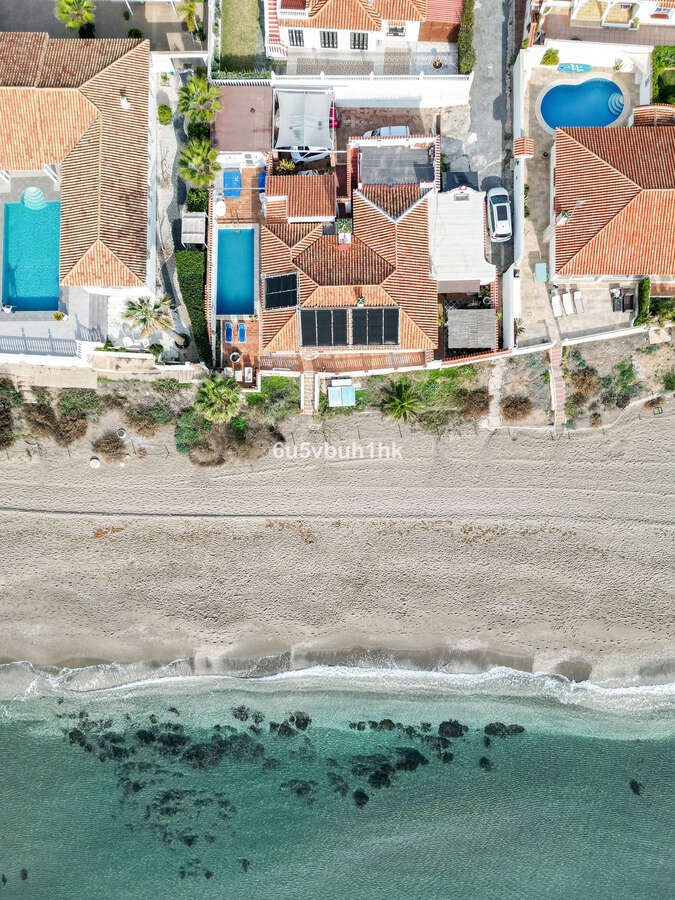 The villa is located on the beachfront, offering stunning sea views with its own access to the beach. In addition, it has a large private terrace, from where you can enjoy the views and relax outdoors.