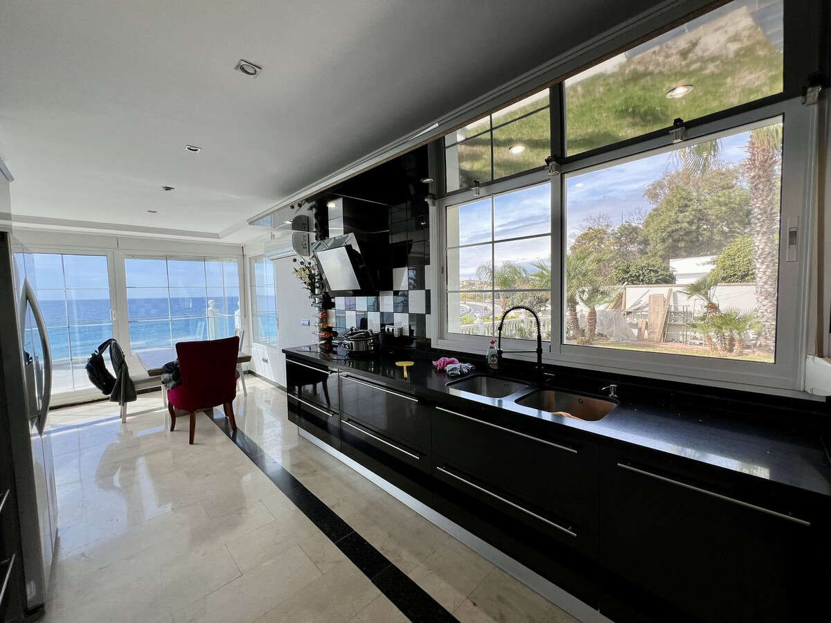 This magnificent villa offers the epitome of coastal living, situated just 15 meters from the pristine beach. Boasting panoramic sea views, this recently refurbished property features two separate living spaces, providing versatility and ample room for relaxation and entertainment.