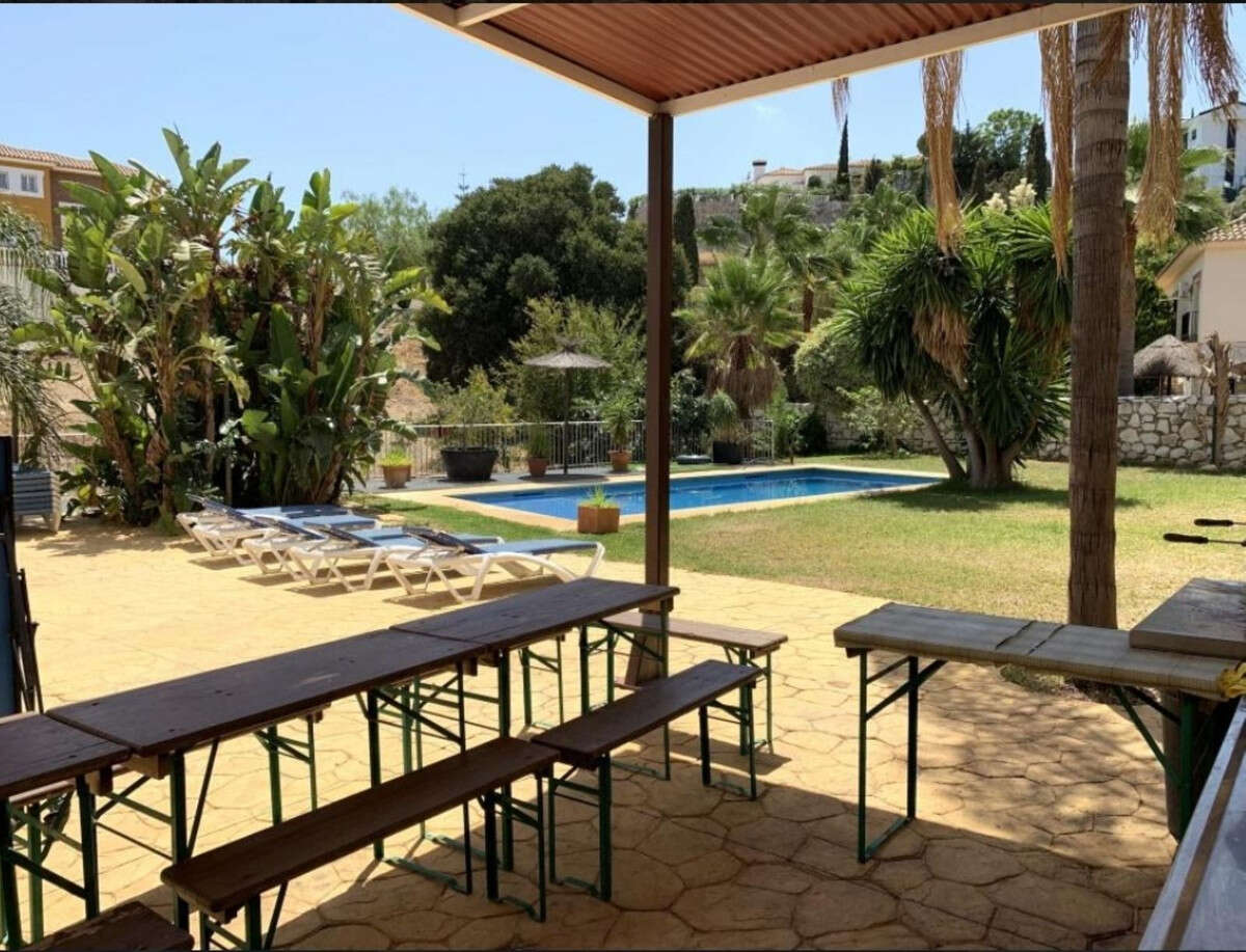 Large but easy maintained garden area with heated pool, separate toilet and BBQ area.