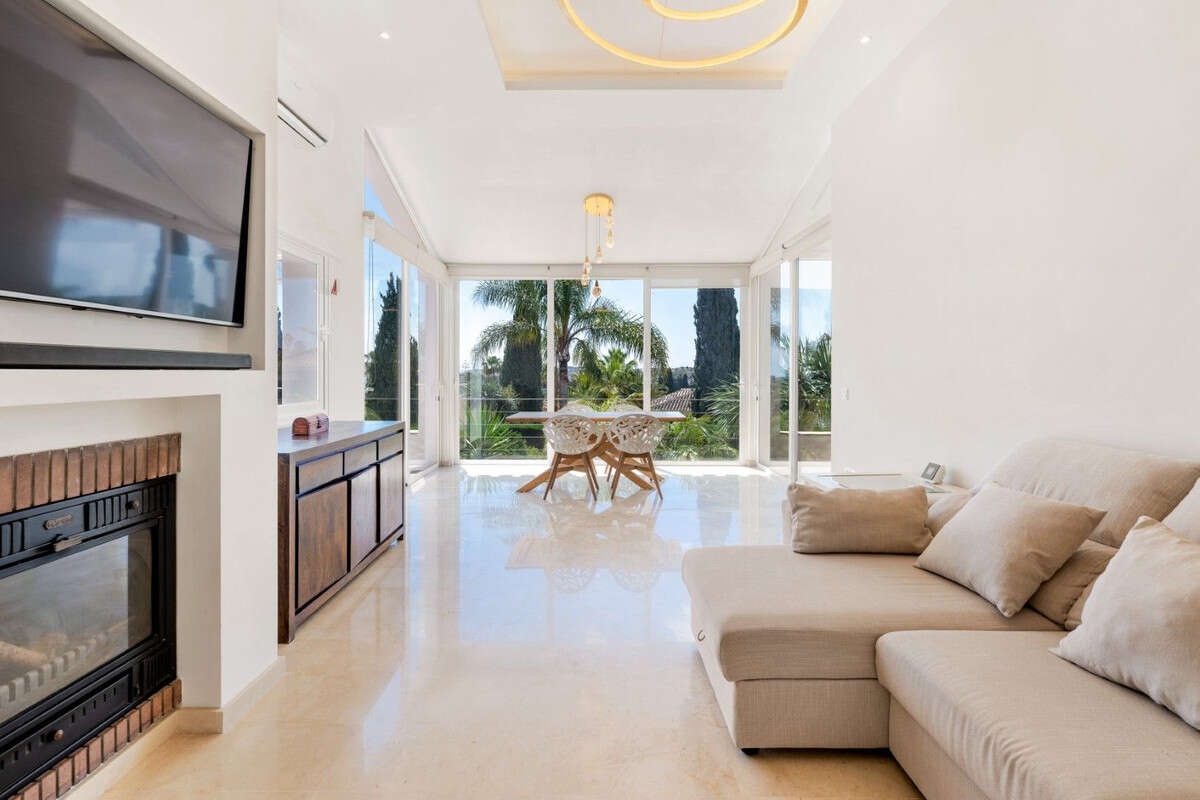 Set within this privileged setting, this beautifully renovated villa has been designed for effortless living, with generous proportions, abundant natural light and a warm, inviting ambience from the moment you step inside. The main level features three spacious bedrooms and three bathrooms, along with a striking double height living room with a wood burning fireplace and large windows that frame the greenery outside. The fully updated, well equipped kitchen is bright and functional, ideal for daily life and for entertaining. Several covered terraces extend the living space outdoors, perfect for morning coffee or relaxed evenings in the shade.