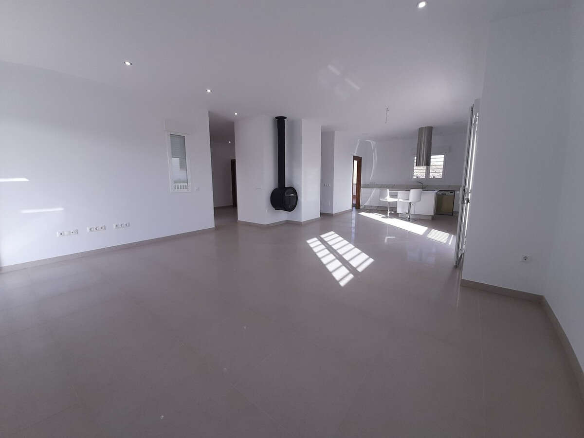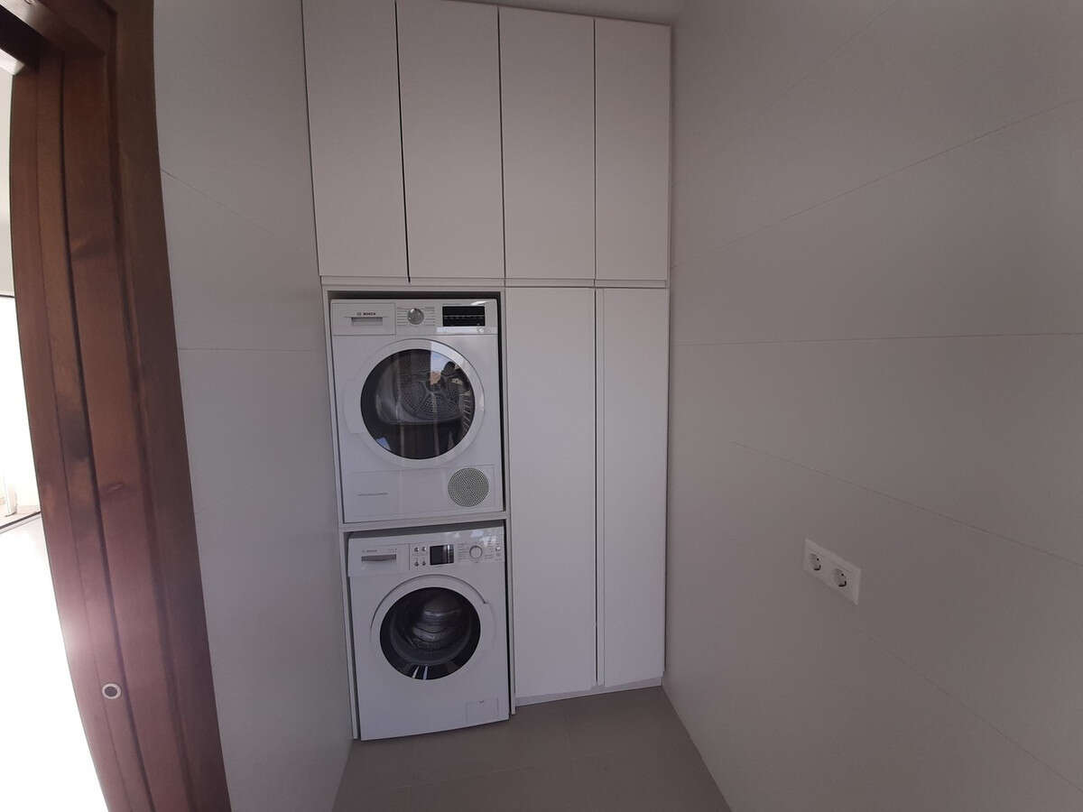 This modern villa has 3 levels, the main level has its main entrance which leads onto two double bedrooms with fitted wardrobes, family bathroom, a separate guest toilet, a bright and large lounge dining room with wood burner, an open plan kitchen with modern integrated appliances and a utility room with a washing machine and tumble dryer installed.