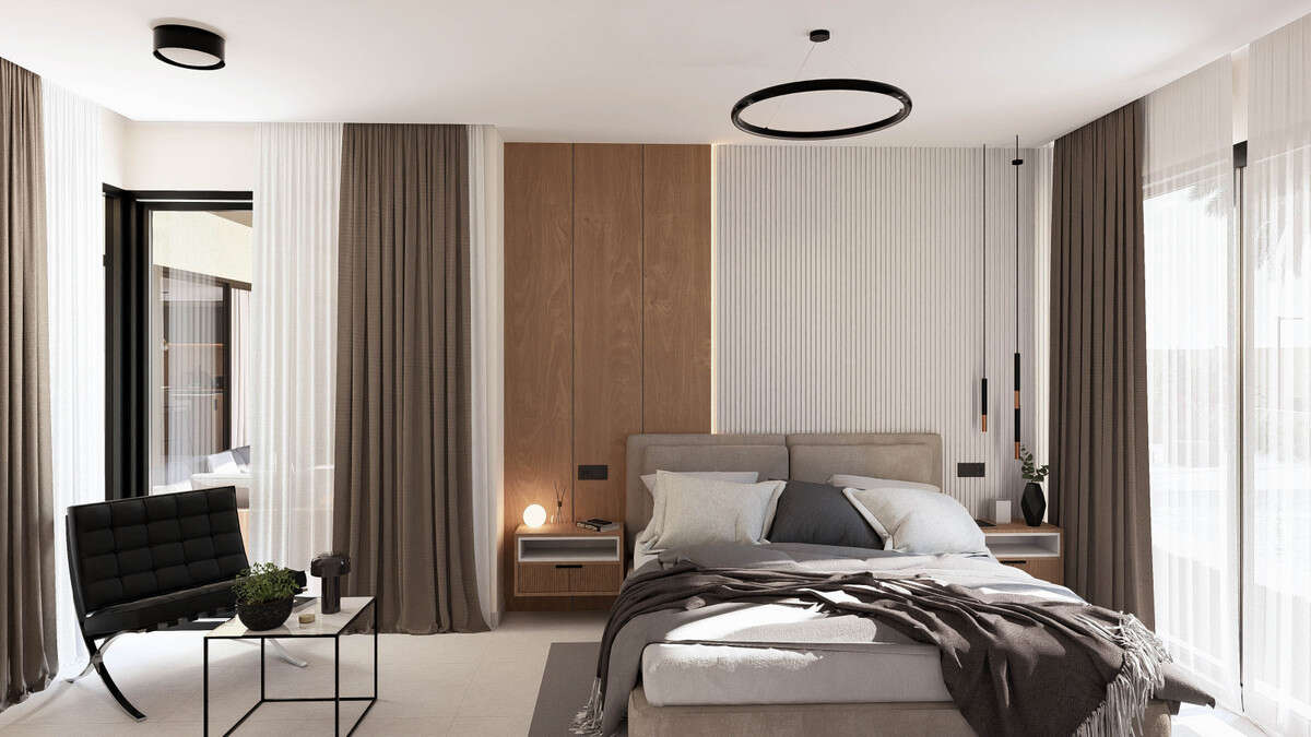 Inside, spacious living areas are bathed in natural light. The design prioritises comfort and serenity while maintaining a distinct architectural character that celebrates simplicity and precision.