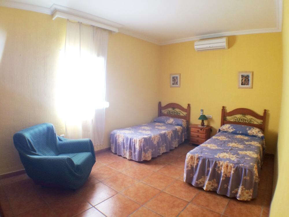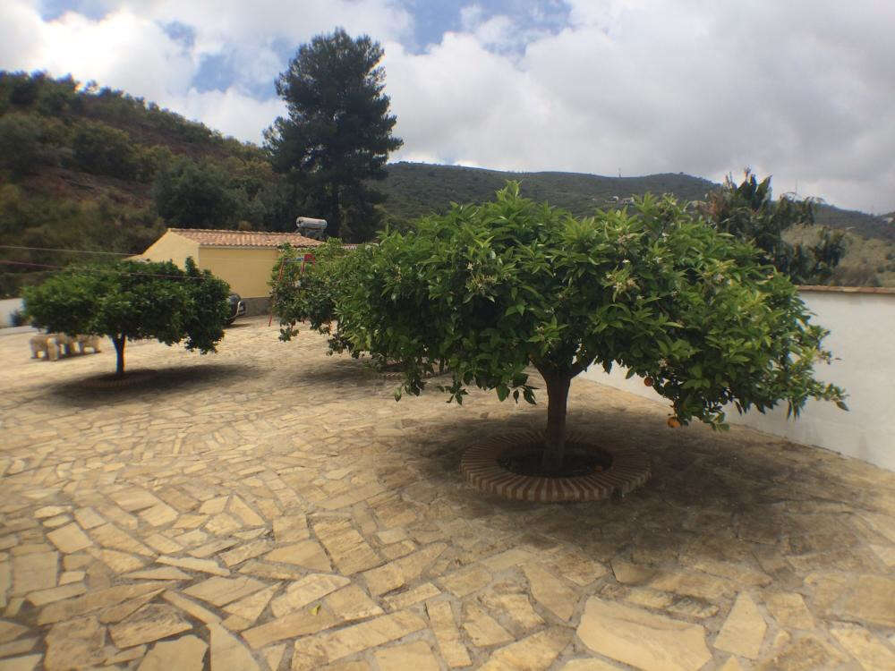 Fantastic Villa set in the countryside surrounded by an abundance of fruit trees and plants. The ground floor of the villa comprises of a spacious lounge with fireplace, dining area, fully fitted kitchen, 3 bedrooms and 1 bathroom. There is also a seating area on the covered terrace at the front. The upper floor is accessed by stairs on the outside of the property and has its own entrance. This floor has a lounge area, a bedroom and a bathroom, and a huge terrace which has uninterrupted sun! The villa is accessed via a good track/road, and has an electric fence at the entrance of the long driveway and ample parking area, a large private swimming pool and gardens. There is also a BBQ area and a separate outhouse for storage.