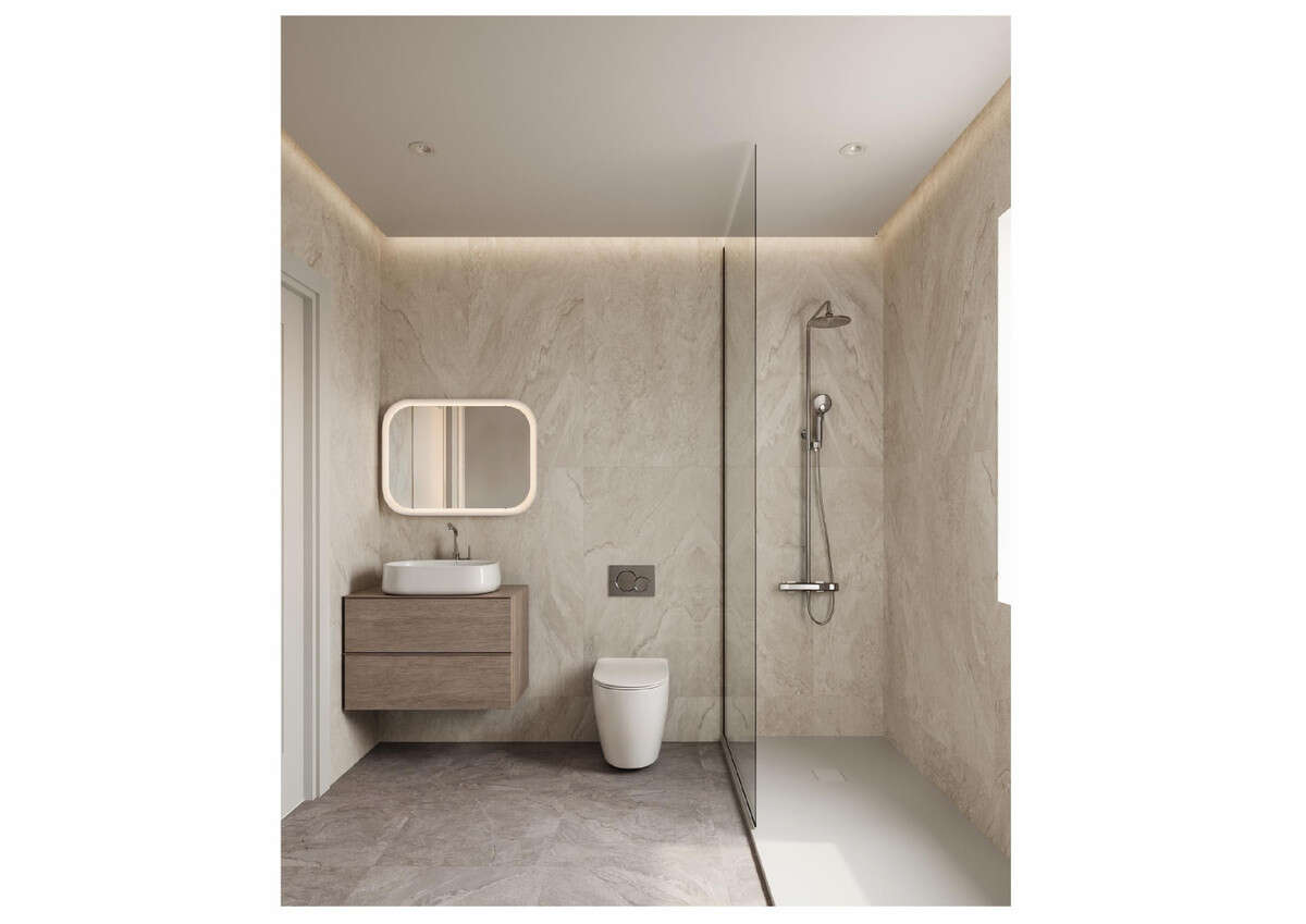 • Ground floor: spacious open-plan living room with kitchen, direct access to the pool, guest bedroom, bathroom, and walk-in closet. The design creates a bright, flowing space ideal for family life and entertaining.