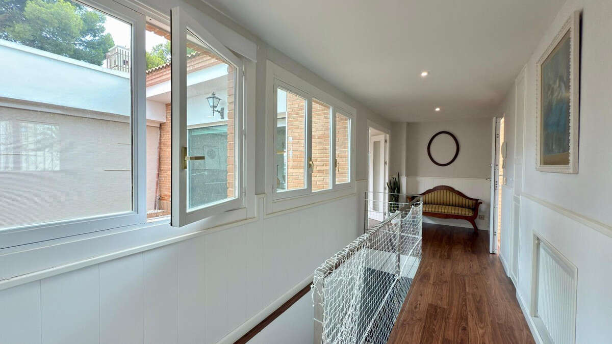 **EXCLUSIVE VILLA IN COBLANCA URBANISATION · BENIDORM ????????**Premium Units Inmuebles Singulares presents this exclusive villa set on a spectacular landscaped plot of over 1,400 m² ????, located in one of the most prestigious and sought-after residential areas of Benidorm. The urbanisation offers permanent private security ????️, gardener and concierge services, sports courts ????, a large communal swimming pool ????♂️, children's playground ????, social centre for family celebrations ????, barbecue and paella area ????????, among other high-end amenities.The property, with a southeast orientation ☀️, has an approximate built area of 300 m² and stands out for its comfort and functionality. It features a spacious 50 m² living room with high wooden ceilings ????, a generous 26 m² kitchen with pantry and laundry/ironing room ????️, a 30 m² master bedroom with walk-in wardrobe and en-suite bathroom ????, two additional bedrooms of over 12 m² each, a full bathroom, and a pleasant summer terrace ????.In addition, the property offers a charming interior courtyard with a water cascade ????, a large garage with space for two large cars and motorbikes ????????️, and two extra rooms ideal for use as storage, utility room, installations room, gym, or multipurpose space ????.The villa is equipped with a private automatic saltwater swimming pool ????♀️, swimming lane and pre-installation for pool heating, centralized alarm system ????, air conditioning and central heating via gas boiler and radiators ????❄️, reinforced security entrance door, digital irrigation system for the garden ????, LED lighting throughout the property ????, motorized garage door, motion-sensor lighting, epoxy resin-treated floors, and a 14 m³ rainwater tank for garden irrigation ????.It also features anti-burglary security glazing with double glazing (Climalit) and aluminum roll-up mosquito screens, high-quality wooden flooring, exclusive designer furniture ????️, and a large 110 cm cassette fireplace, perfect for creating a warm and welcoming atmosphere ????.A unique property for those seeking exclusivity, privacy, and quality of life in one of the finest areas of the Costa Blanca. Contact us for more information or to arrange a viewing ????✨.