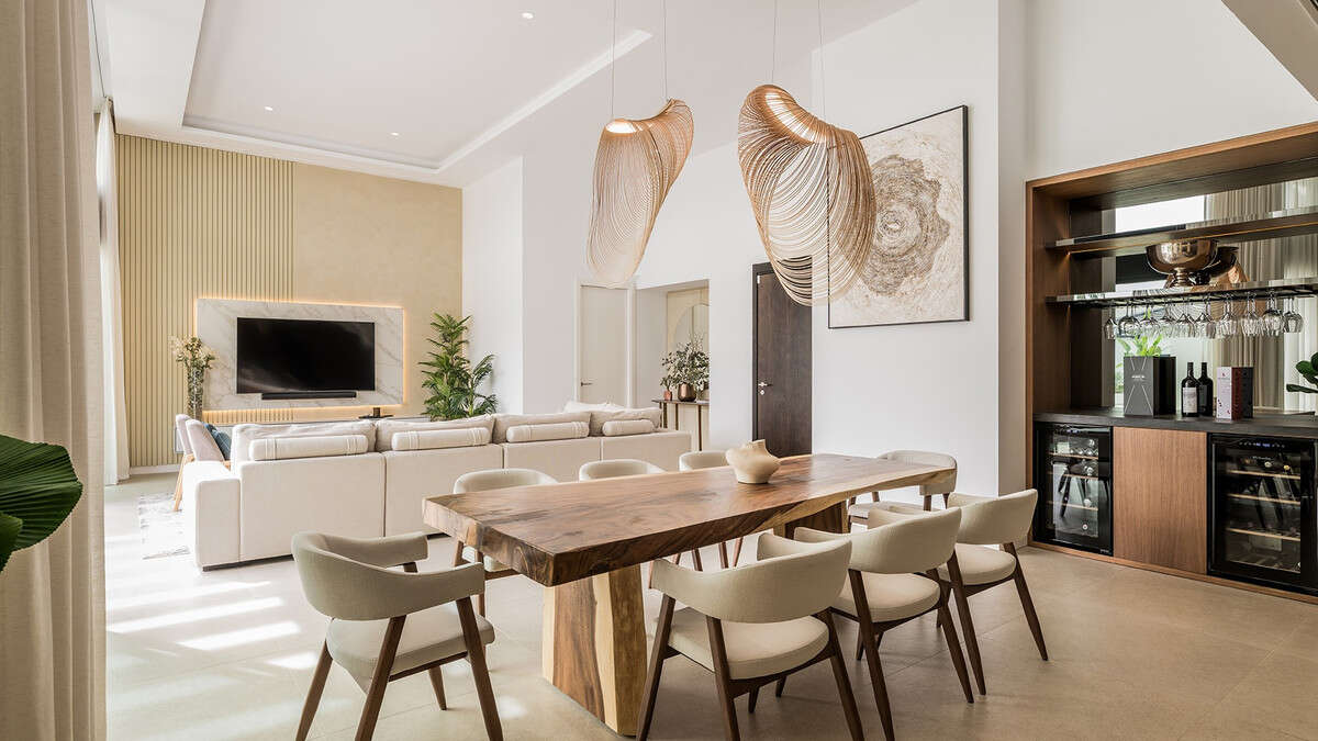 The villa is built mainly all on one level plus lower level, quite rare to find on the market. It has a fresh, modern feel throughout. Decorated in a soft, neutral palette, it feels relaxed, luminous and welcoming.