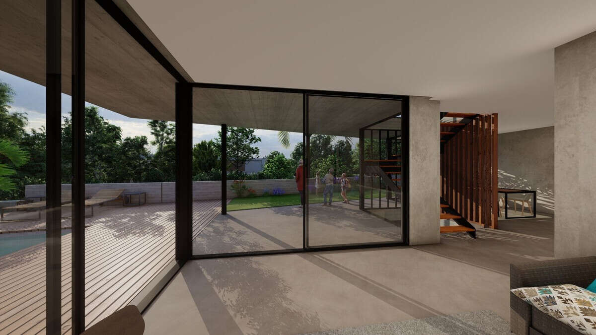 The open living spaces are enhanced by impressive high ceilings, creating a bright and airy atmosphere throughout. Large floor-to-ceiling windows frame the surrounding landscape and bring seamless indoor-outdoor living.